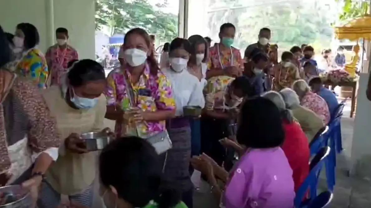 ชาวบ้านหนองพลับ หมู่ที่ 3 ต.ตะเคียนเตี้ย จัดพิธีทำบุญกลางบ้าน รดน้ำดำหัวผู้สูงอายุ เนื่องในช่วงเทศกาลประเพณีวันสงกรานต์ ประจำปี 2565