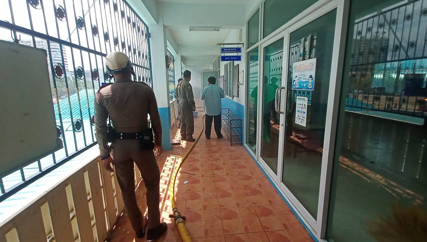 ที่เกิดเหตุ อาคารสุขศรีการ เป็นอาคารเรียนของเด็กนักเรียนชั้นอนุบาล สูง 4 ชั้น โดยห้องเกิดเหตุเป็นห้องนักเรียนอนุบาล 1 อยู่ชั้น 2 พบกลุ่มควันจำนวนมาก พวยพุ่งออกมาจากตัวอาคาร เจ้าหน้าทีตรวจสอบพบว่าปลวไฟดับไปแล้ว ซึ่งก่อนหน้านี้ครูได้ใช้ถังสารเคมีฉีดระงับจนเพลิงสงบลง เจ้าหน้าที่ยังคงใช้น้ำฉีดระงับจุดต้นเพลิงเพื่อความมั่นใจ และระบายกลุ่มควันออก โดยใช้เวลาไม่นาน