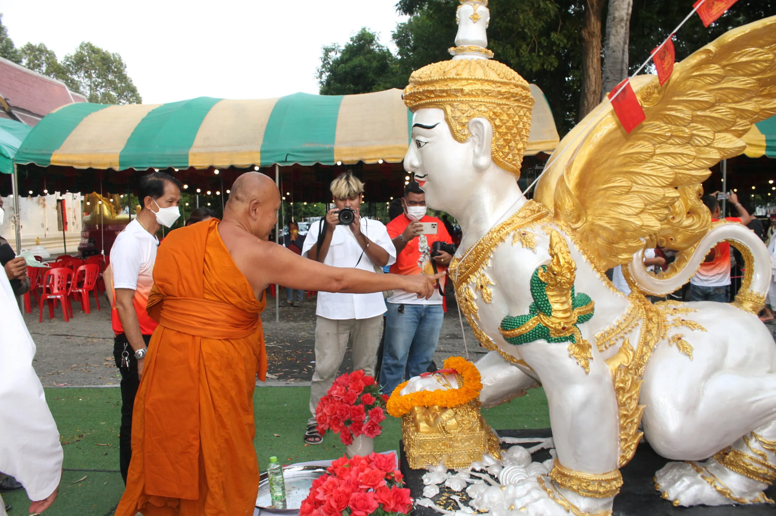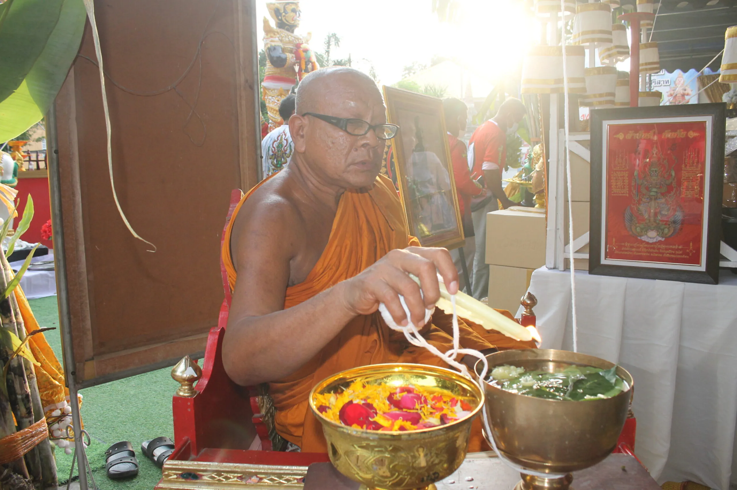 พระอาจารย์แดง เกจิชื่อดัง เมืองกรุงเก่า ร่วมพิธีนั่งปรกอธิษฐานจิต บวงสรวงพุทธาภิเษกท้าวเวสสุวรรณ ประชาชนจำนวนมากเดินทางมาทำพิธีแก้บน ครอบครู และขอโชคลาภกับท้าวเวสสุวรรณ หลังจากที่หลายคนได้โชคก้อนโตมาก่อนหน้ารับเต็มๆ ครั้งนี้กลับมาขอโชคใหม่ หลวงพ่อเจ้าอาวาสจุดประทัดหมื่นนัดเองกับมือ นักเสี่ยงโชคเฮลั่นวัดได้เลขถูกใจ อมยิ้มแก้มปริ ก่อนที่จะใกล้ถึงวันออกสลากกินแบ่งรัฐบาล