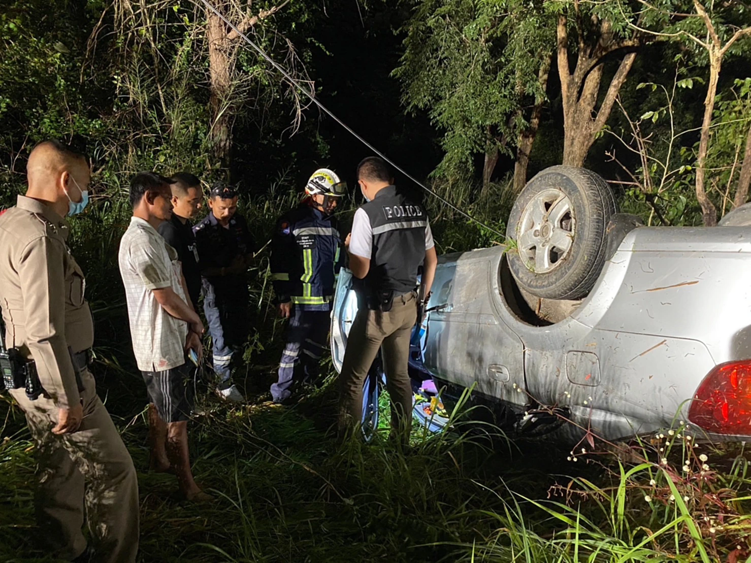 เวลา 00.30 น. วันที่ 26 พฤศจิกายน 2565 พ.ต.ต.ประกาศิต พละเดช สว.สอบสวน สภ.ห้วยใหญ่ จ.ชลบุรี รับแจ้งเกิดอุบัติเหตุรถยนต์เก๋ง เสียหลักพลิกคว่ำเข้าป่าข้างทาง มีผู้ได้รับบาดเจ็บติดคาซากจำนวน 3 คน เหตุเกิดบนถนน 331 ฝั่งขาพัทยา ต.ห้วยใหญ่ อ.บางละมุง จ.ชลบุรี หลังรับแจ้งจึงประสานหน่วยกู้ภัยมูลนิธิสว่างบริบูรณ์ธรรมสถานเมืองพัทยา พร้อมอุปกรณ์ตัดถ่างรีบเดินทางไปตรวจสอบ