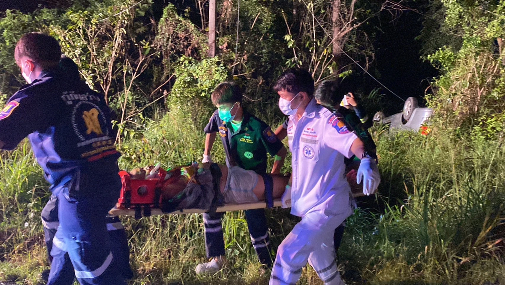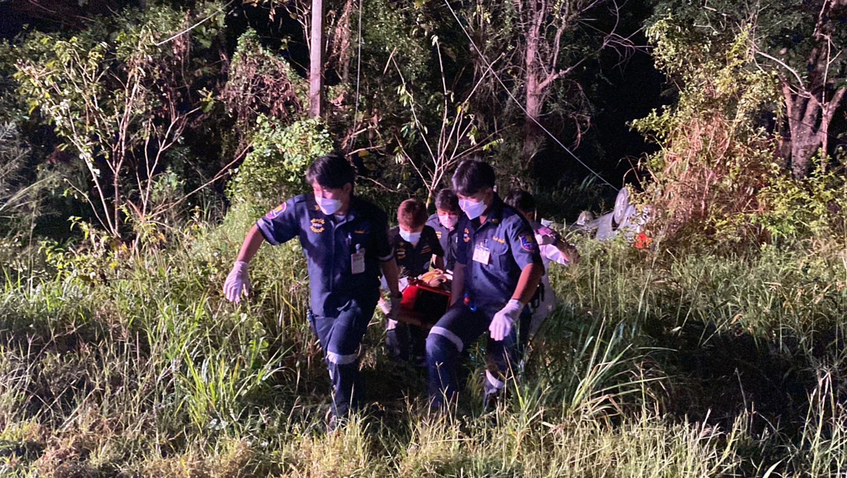 ที่เกิดเหตุพบรถยนต์เก๋ง ยี่ห้อ เชฟโลเลต ออพทรา สีฟ้า หมายเลขทะเบียน งธ 7367 ชลบุรี เสียหลักพลิกคว่ำ สภาพหงายท้องล้อชี้ฟ้า เข้าไปในป่าห่างจากถนนประมาณ 20 เมตร ตรวจสอบภายในตัวรถ พบร่าง น.ส.เพชรรัตน์ ชื่อพันธุ์ อายุ 35 ปี ภรรยาคนขับ น.ส.พนาพร สุรวิทย์ อายุ 16 ปี หลานสาว นอนร้องครวญครางติดคาซากรถ จนท.กู้ภัย จึงใช้เครื่องถัดถ่างงัด จนสามารถช่วยเหลือผู้บาดเจ็บออกมาได้ ก่อนรีบเคลื่อนย้ายส่ง รพ.บางละมุง