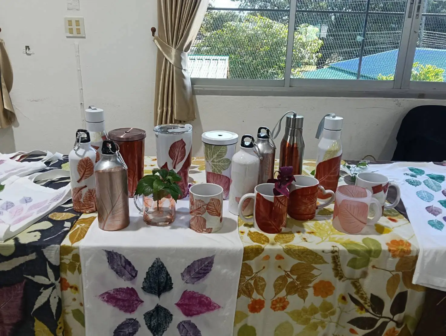 2. Ecoprint บนภาชนะ โดย นางสาวรรณชลี กุลศรีไชย และ นางสาวเยาวทัศน์ อรรถาชิต จากมหาวิทยาลัยนเรศวร