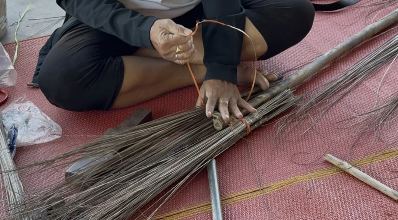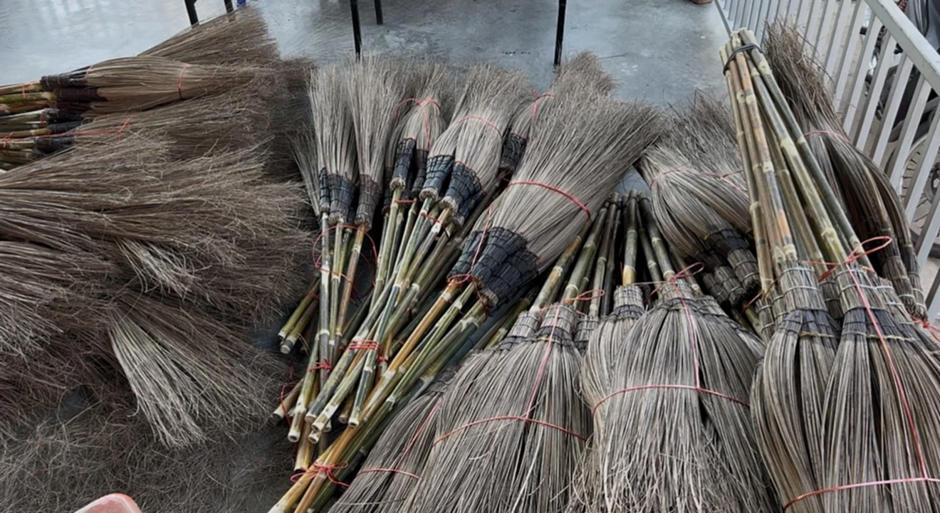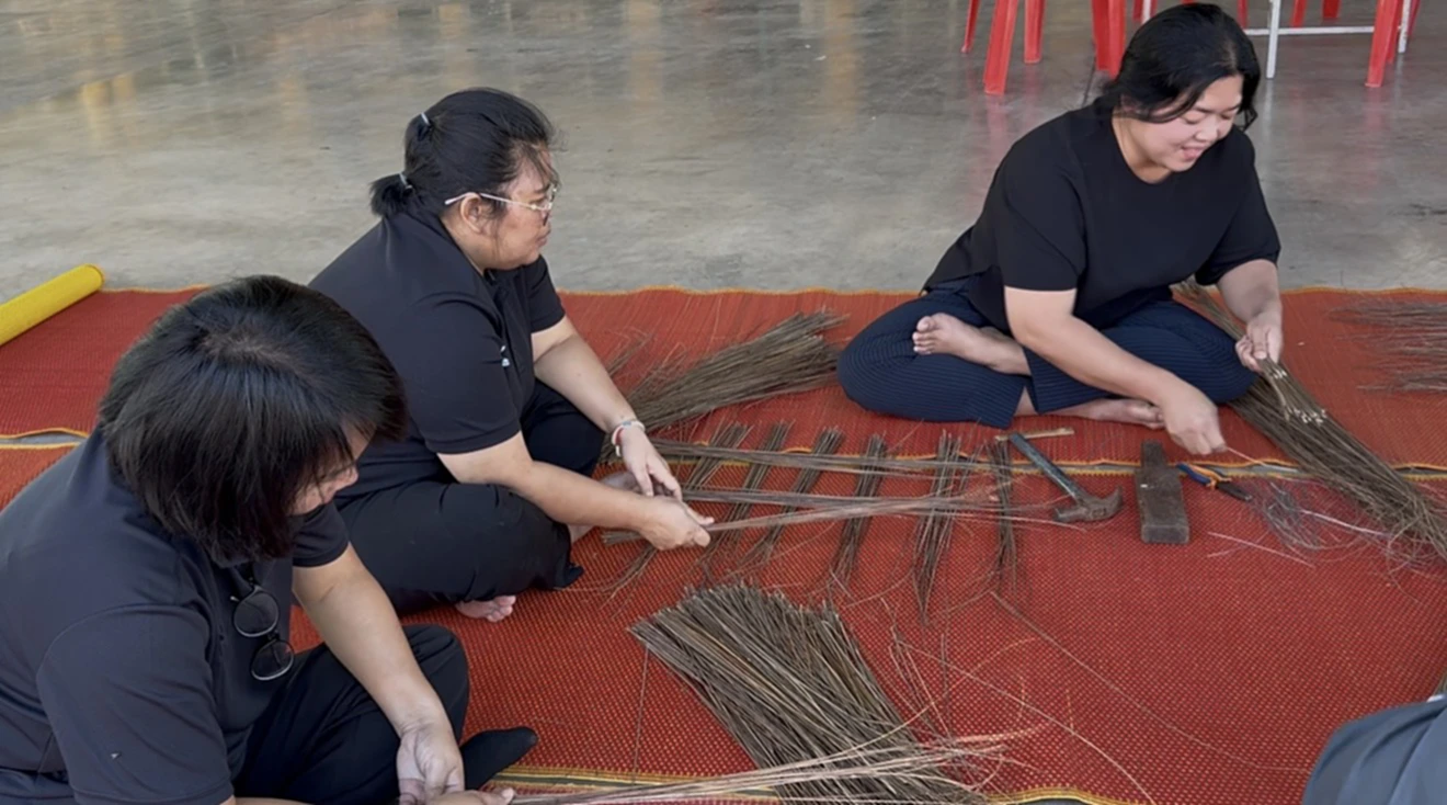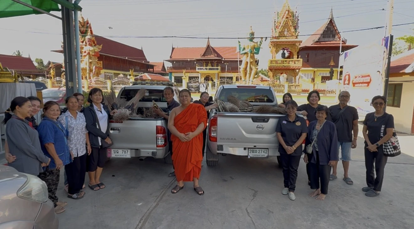 เจ้าอาวาสนำคณะสงฆ์และชาวบ้านช่วยกันทำไม้กวาดทางมะพร้าวส่งมอบไปฟื้นฟูที่จังหวัดสงขลา