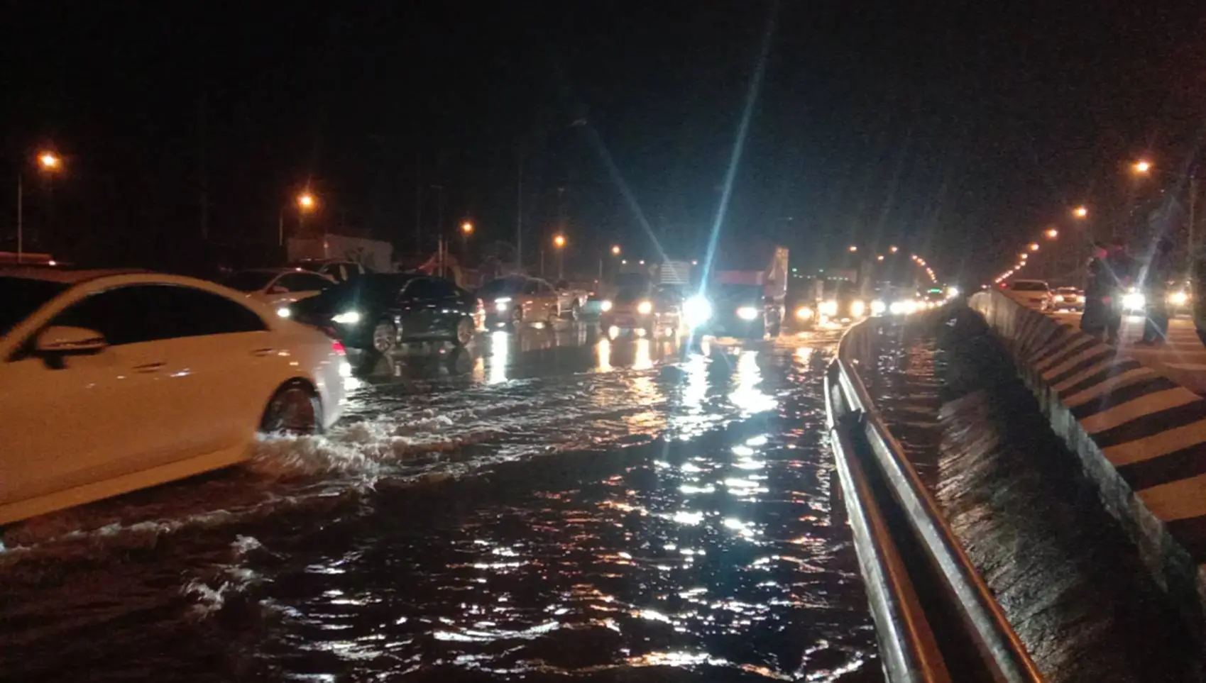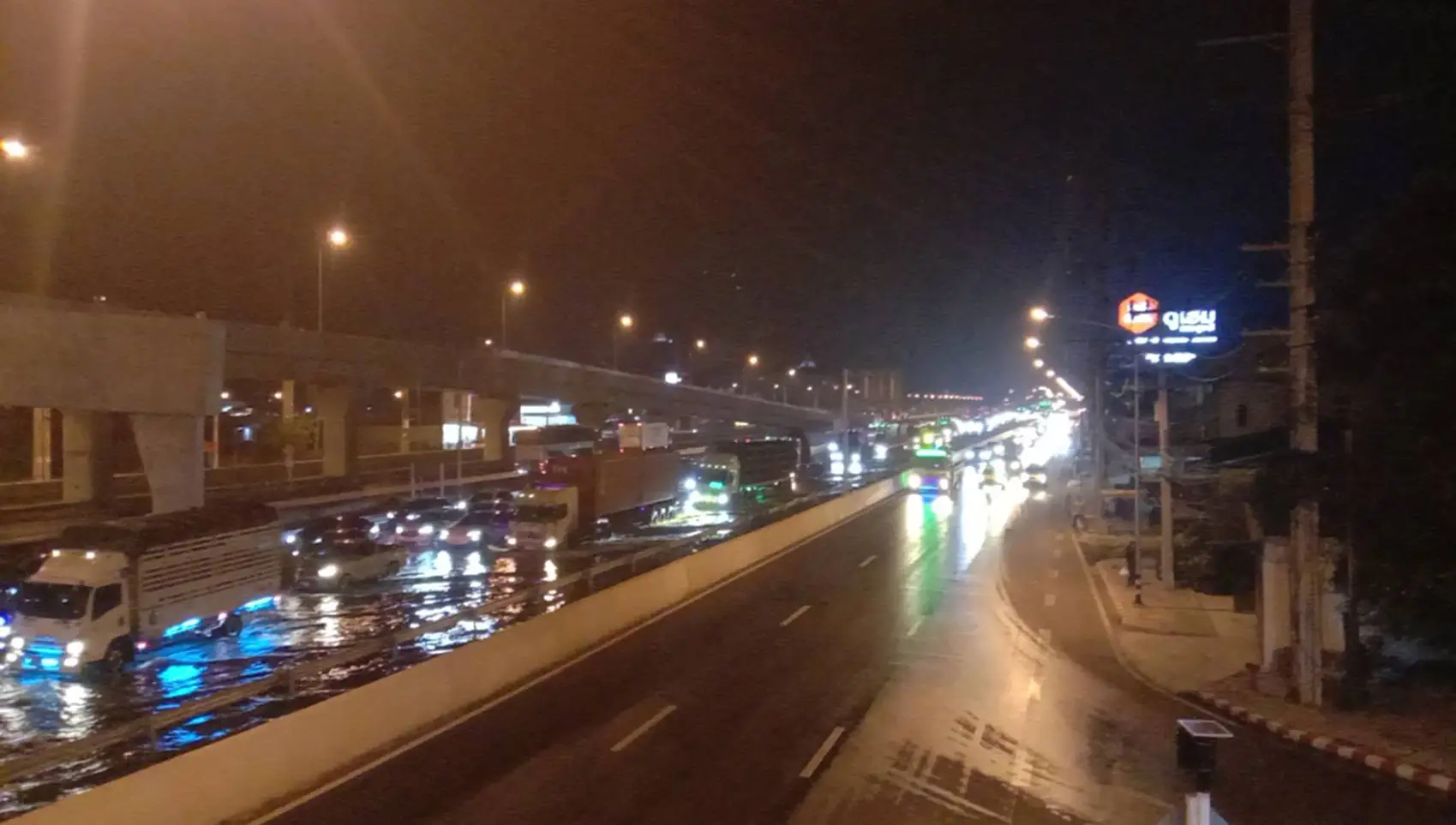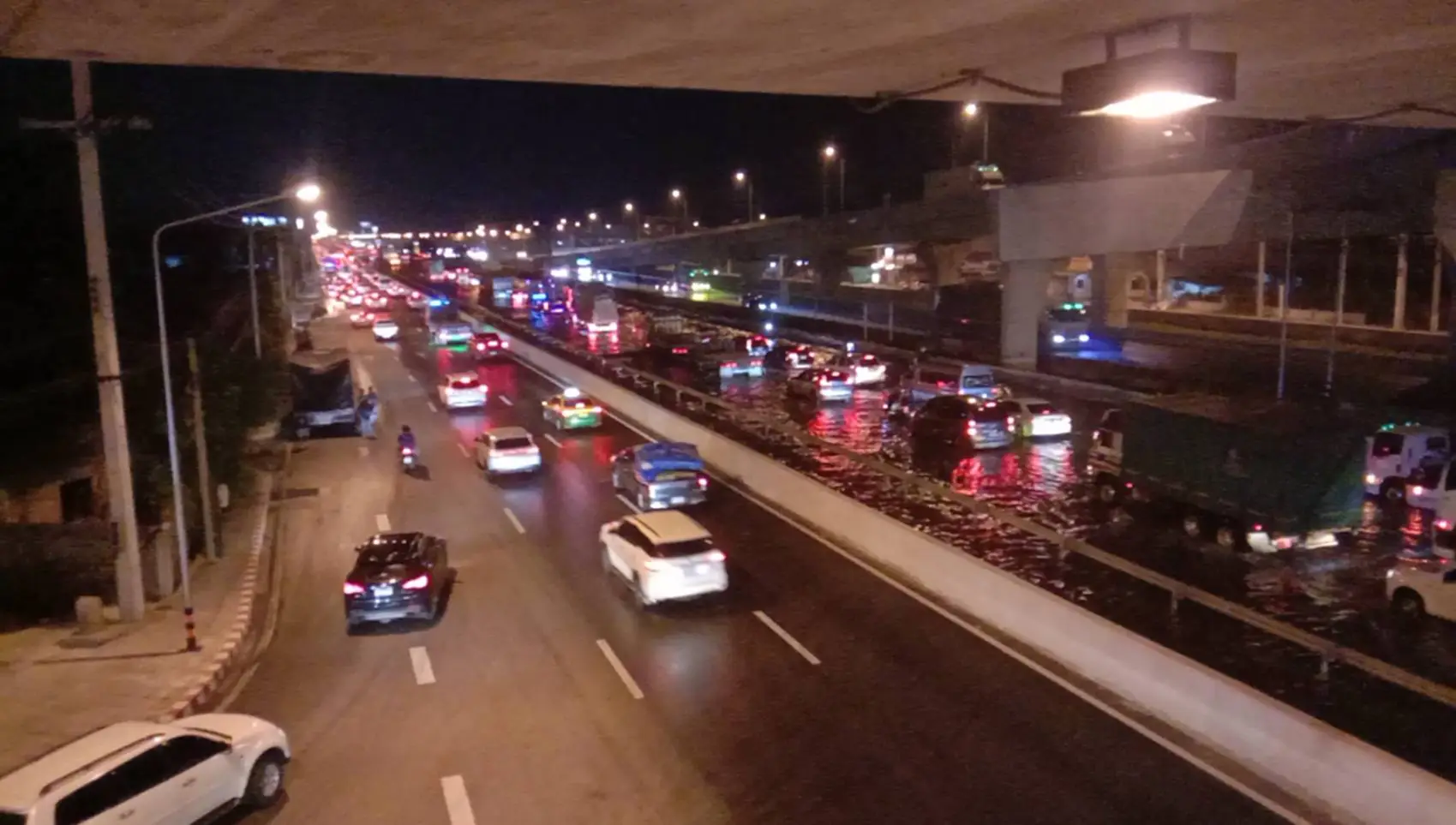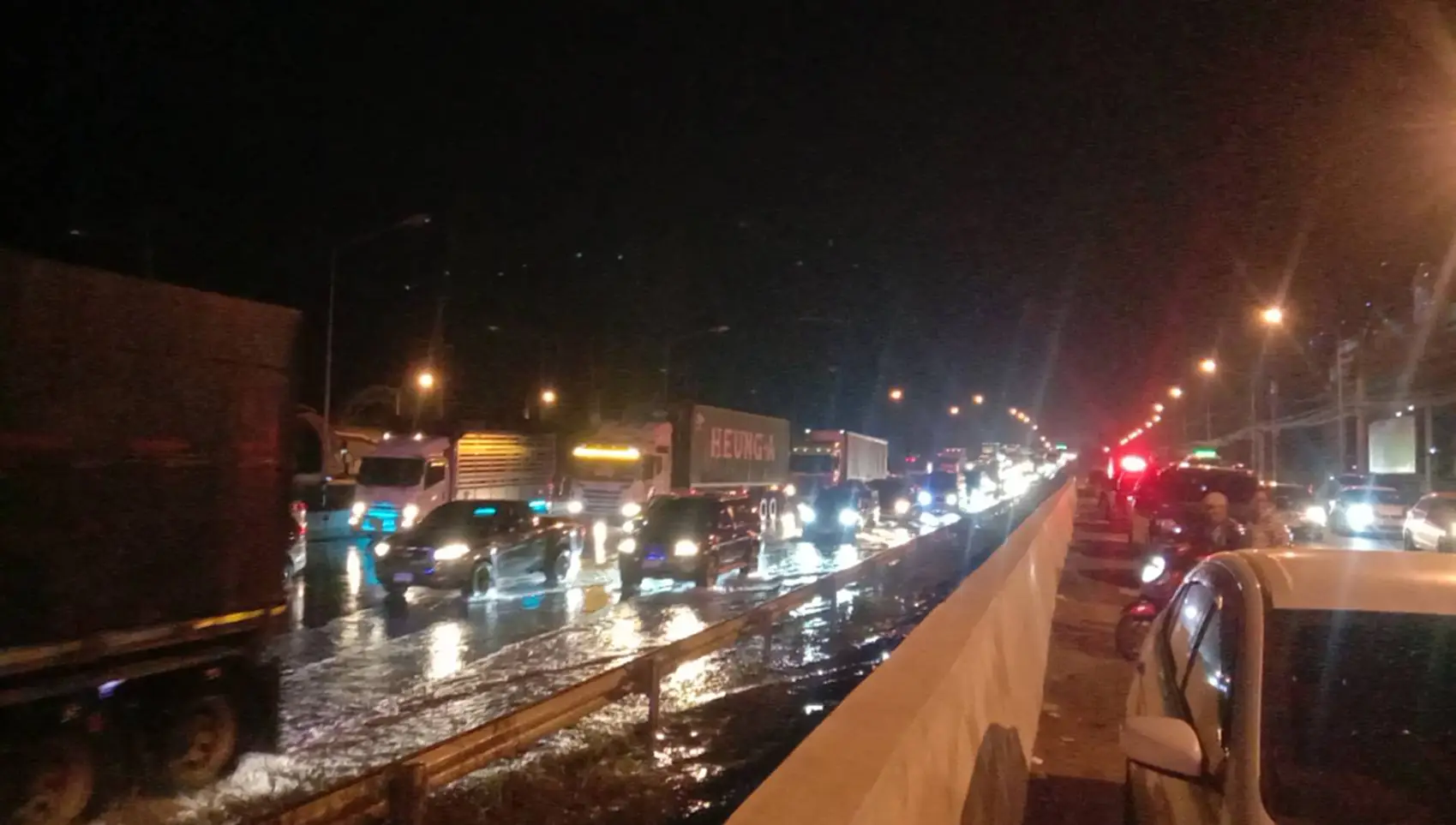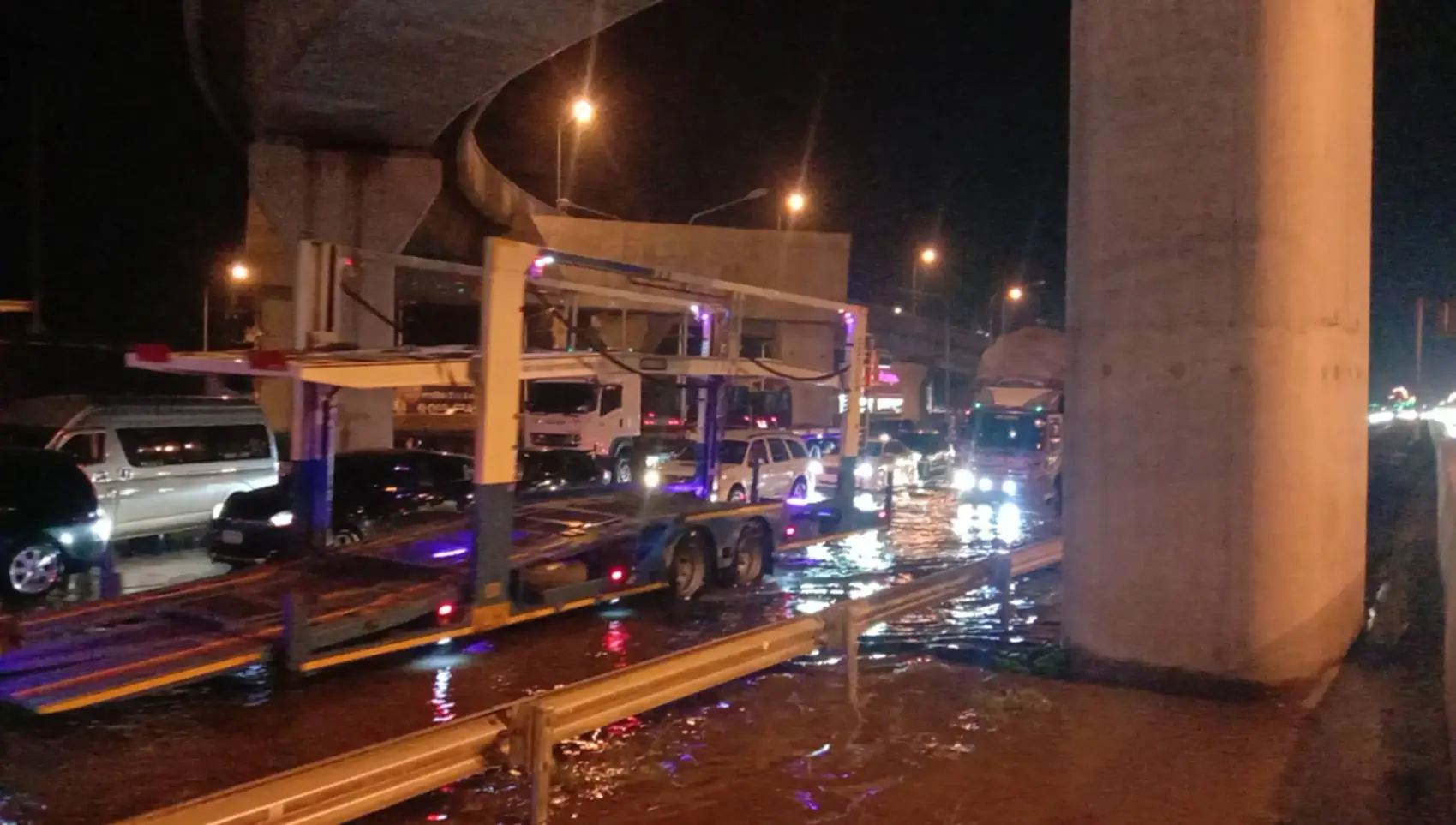 พระราม 2 อ่วมอิทธิพลน้ำทะเลหนุนสูงการจราจรติดหนึบ