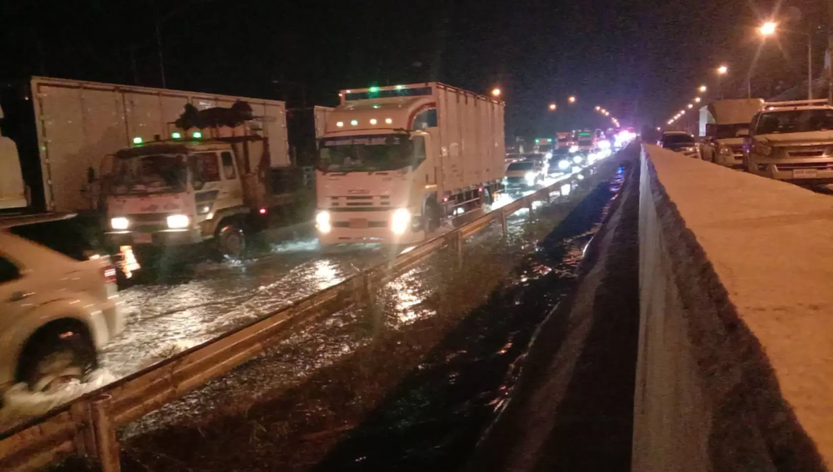 โดยเครื่องสูบน้ำก็คงยังสูบน้ำออกจากพื้นผิวจราจรอยู่ตลอดเวลาเพื่อลดระดับน้ำในช่องทางจราจรเพาอให้พื้นผิวจราจรกับมาใช้ได้ตามปกติโดยเร็ว