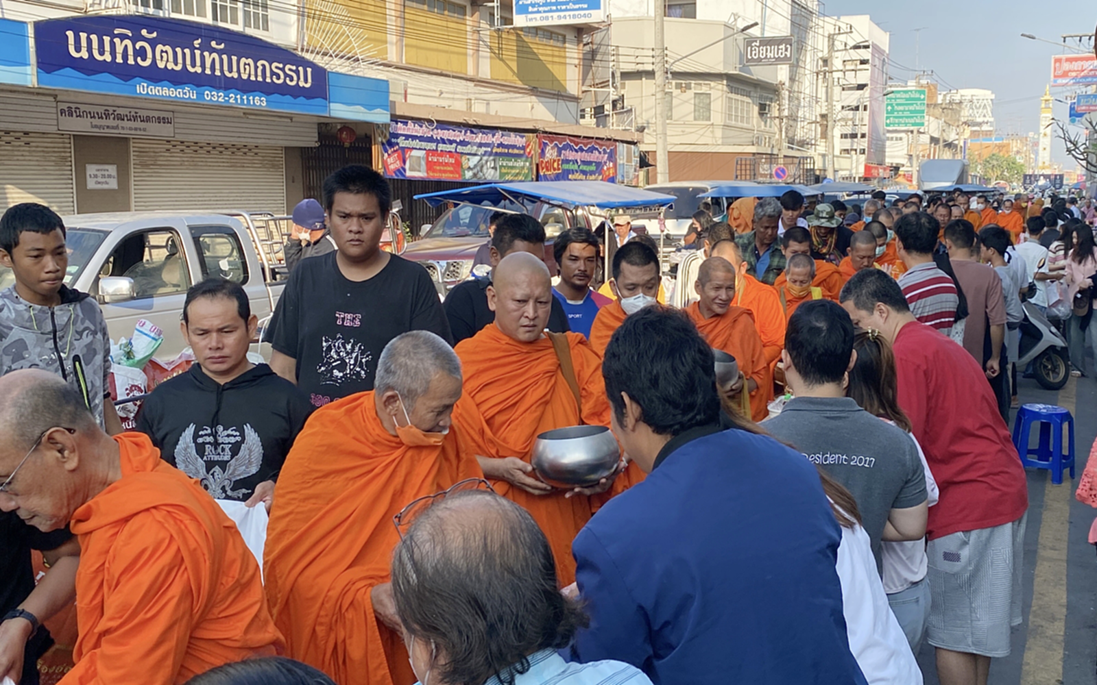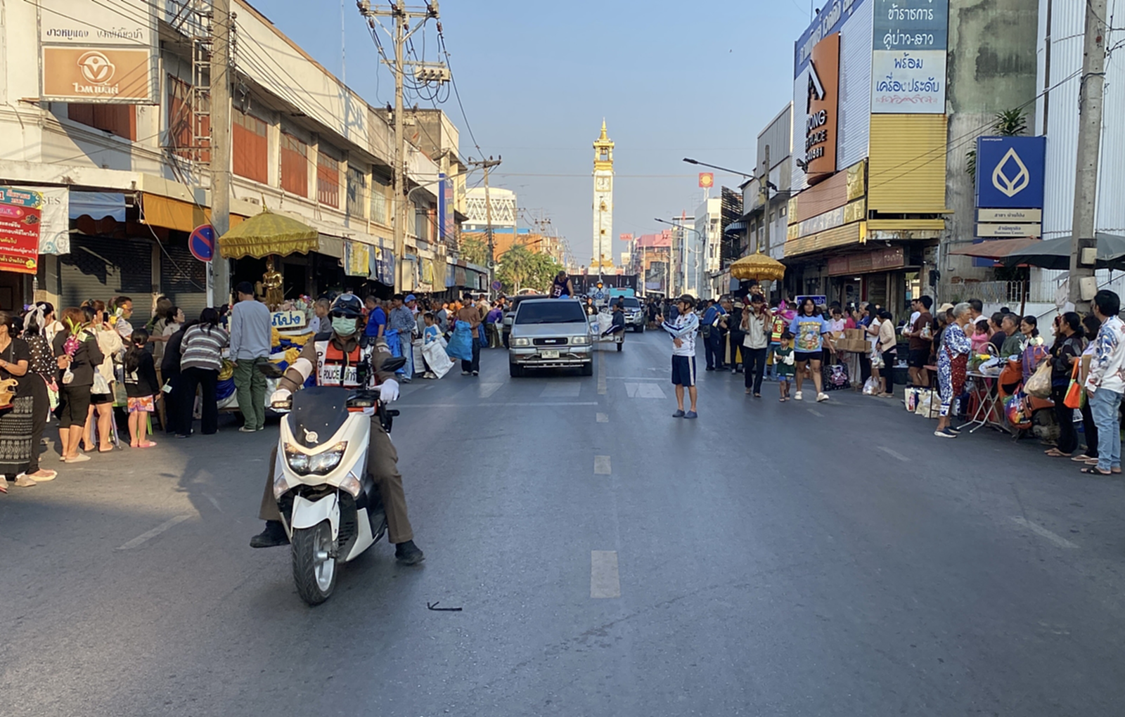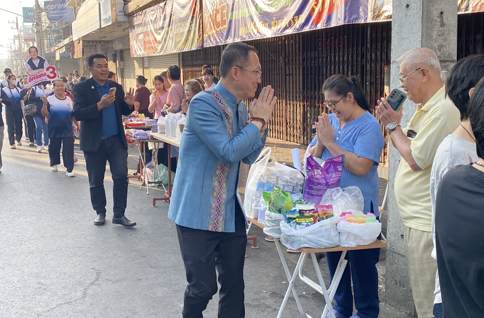 ชาวบ้านโป่งร่วมทำบุญตักบาตรรับศักราชใหม่ อย่างพร้อมเพียงริมถนนแสงชูโตบรรยากาศอบอุ่น อิ่มบุญพร้อมสีสันการเมืองร่วมแจม