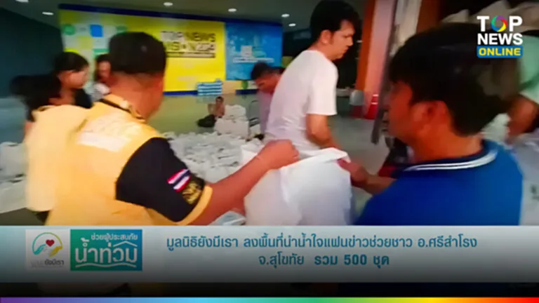 พร้อมนำน้ำใจแฟนข่าว Top News มอบให้กับประชาชนผู้ประสบอุทกภัยในพื้นที่จังหวัดสุโขทัย ณ อบต.วังทอง อ.ศรีสำโรง จำนวน 400 ชุด และ อบต.วังใหญ่ อ.ศรีสำโรง จำนวน 100 ชุด เมื่อวันจันทร์ที่ 2 กันยายน 2567