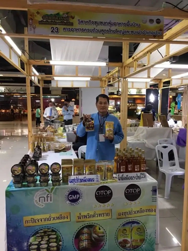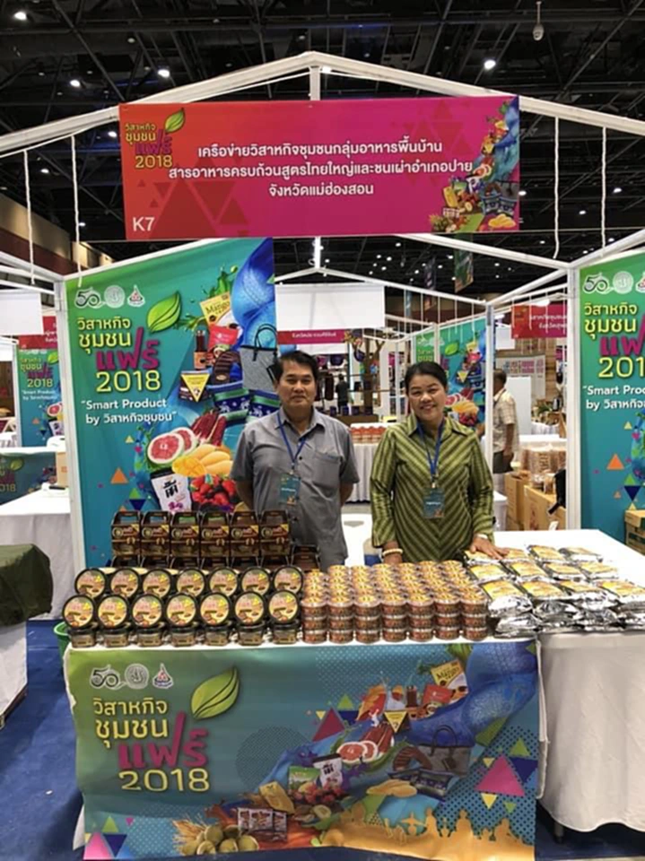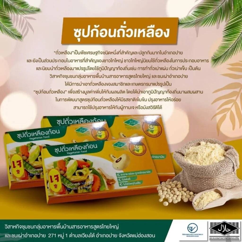 นางอาภรณ์ แสงโชติ ประธานเครือข่ายวิสาหกิจชุมชนกลุ่มอาหารพื้นบ้านสารอาหารครบถ้วนสูตรไทยใหญ่และชนเผ่าอำเภอปาย กล่าวว่า จุดเริ่มต้นของการรวมกลุ่มจดทะเบียนวิสาหกิจชุมชน มาจากความมุ่งมั่นในการนำวัตถุดิบในท้องถิ่นมาแปรรูปเพื่อเพิ่มมูลค่า สร้างรายได้เสริมให้กับสมาชิกกลุ่มซึ่งส่วนใหญ่เป็นสตรีในชุมชน และแบ่งเบาภาระของครอบครัว พร้อมทั้งช่วยเหลือเกษตรกรในพื้นที่ด้วยการรับซื้อถั่วเหลืองคุณภาพดี มาแปรรูปเป็นอาหารพื้นบ้านนานาชนิด อาทิเช่น แปรรูปถั่วเหลืองเป็นถั่วเน่าหมัก ถั่วเน่าซา ถั่วเน่าแผ่น ผงปรุงรสถั่วเหลืองทอง ซึ่งล้วนเป็นผลิตภัณฑ์ที่สืบทอดภูมิปัญญาของชาวไทยใหญ่และชนเผ่าต่าง ๆ ในอำเภอปาย
