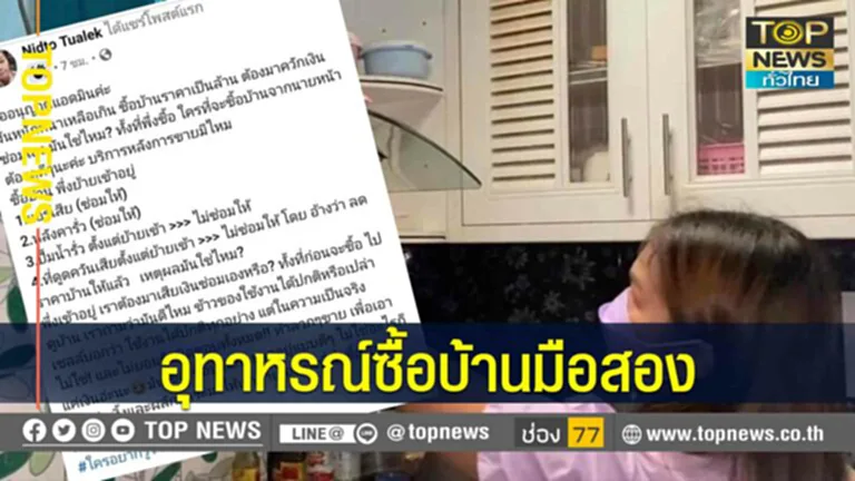 เมื่อเวลา14.30น.วันที่ 25ก.ย. 2564 ผู้สื่อข่าวรายงาน จากกรณีผู้ใช้เฟสบุ๊คชื่อ nidto tualek ได้โพสต์ข้อความระบายเกี่ยวกับการซื้อบ้านมือสองเมื่อบ้านมีปัญหาทางผู้ขายไม่สนใจ ดังมีข้อความดังนี้ “ มันหนักหนาเหลือเกิน ซื้อบ้านราคาเป็นล้าน ต้องมาควักเงินซ่อมเอง มันใช่ไหม? ทั้งที่พึ่งซื้อ ใครที่จะซื้อบ้านจากนายหน้าต้องดูดีๆนะค่ะ บริการหลังการขายมีไหม ซื้อบ้าน พึ่งย้ายเข้าอยู่