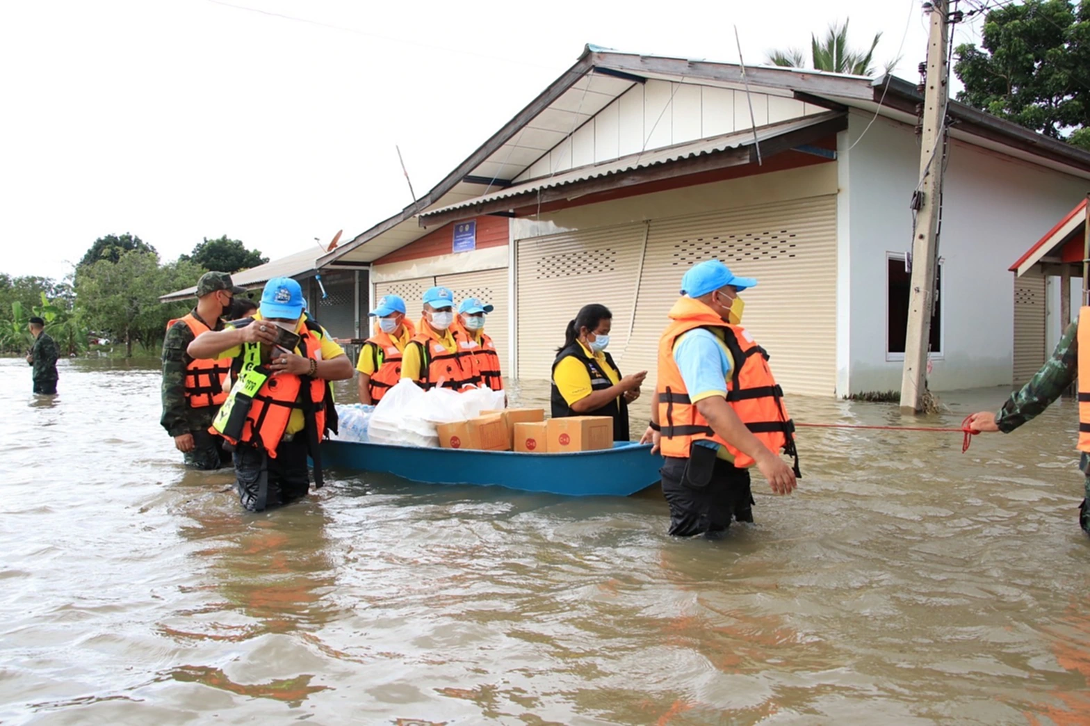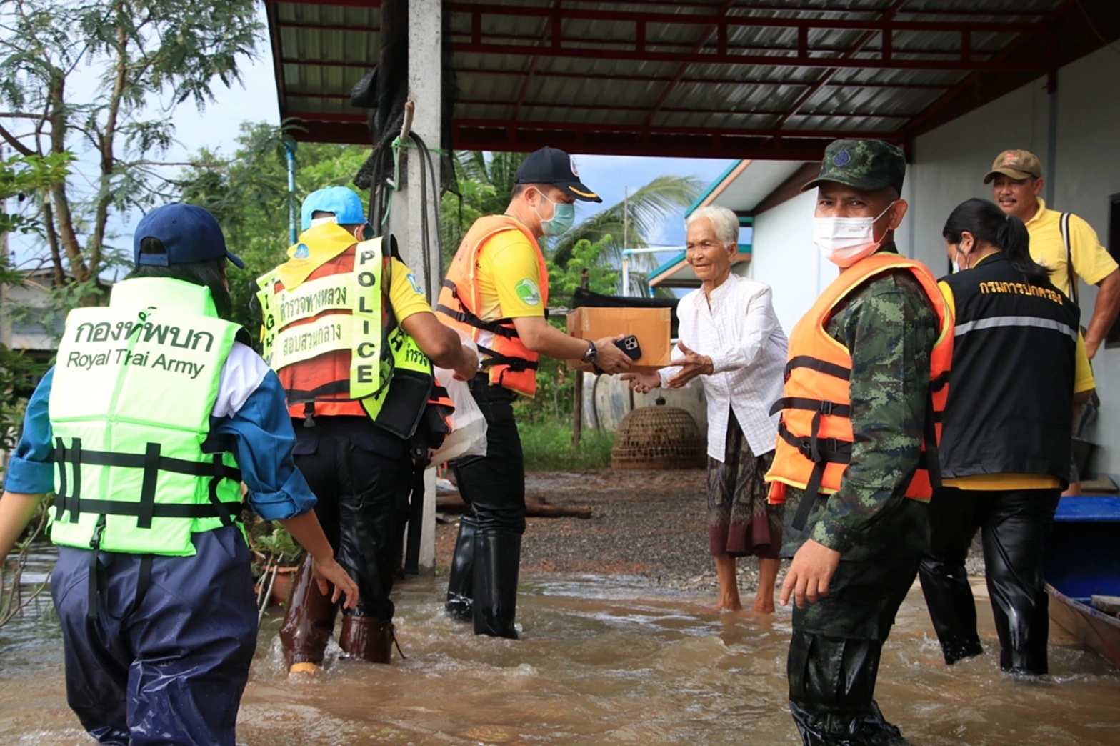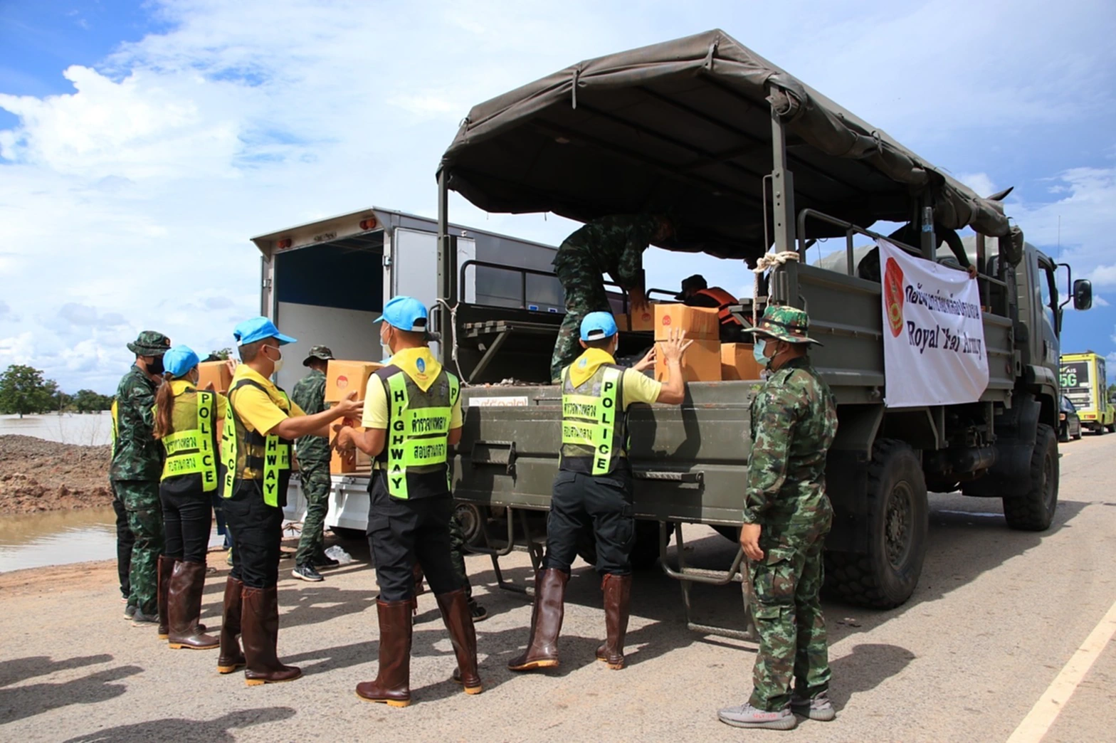 ได้ร่วมกันนำอาหารปรุงสุก ถุงยังชีพ ข้าวสาร อาหารแห้ง น้ำดื่ม จำนวน 200 ชุด มาแจกจ่ายให้กับประชาชนที่ได้รับความเดือนร้อนถึงหน้าบ้าน โดยลุยน้ำที่ท่วมสูงเกือบเมตร โดยการอำนวยความสะดวกจากทหารกองพันพัฒนาที่ 2