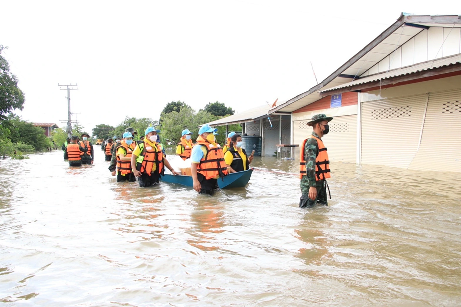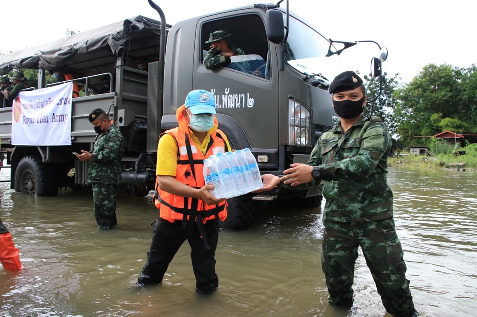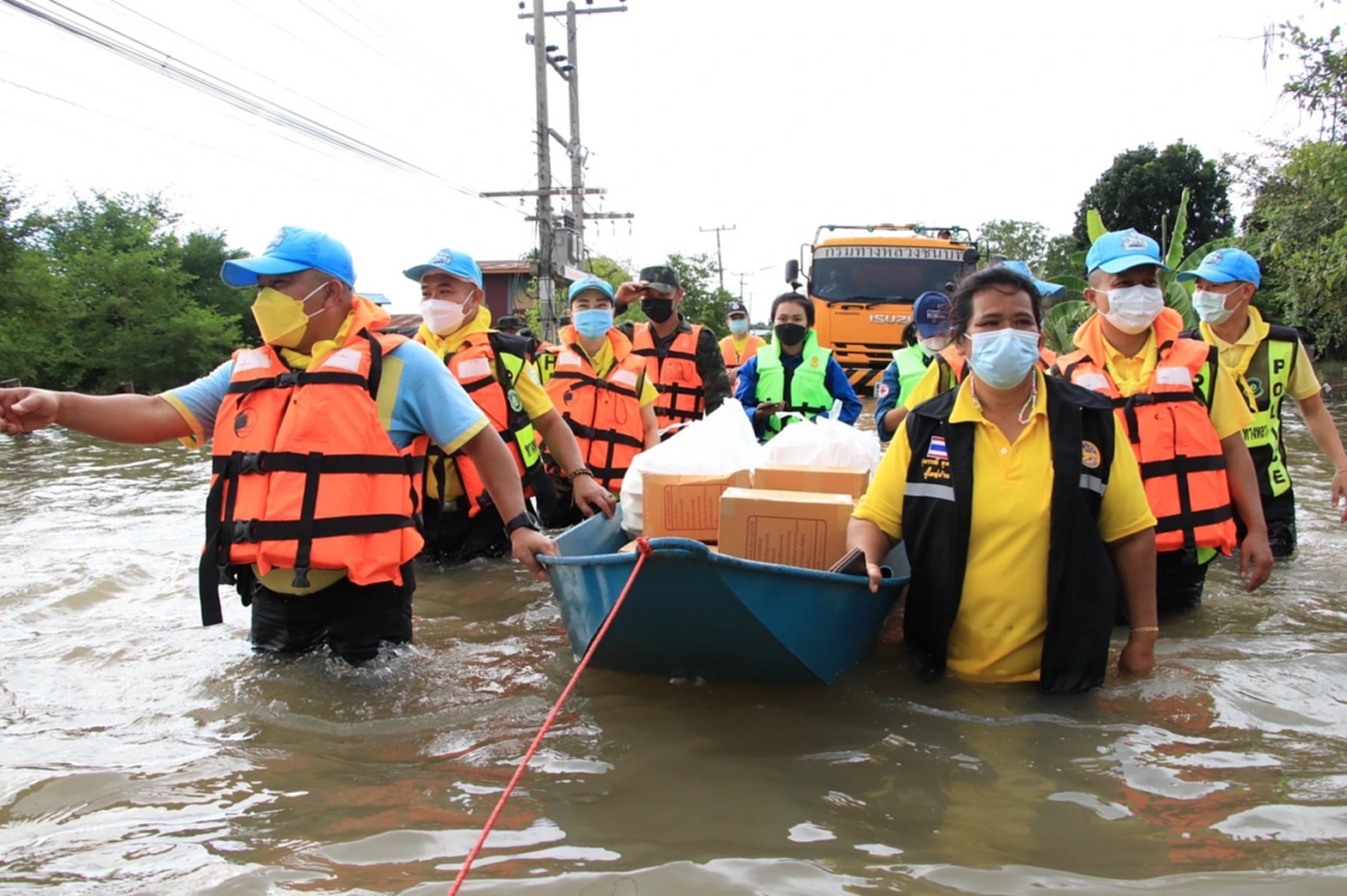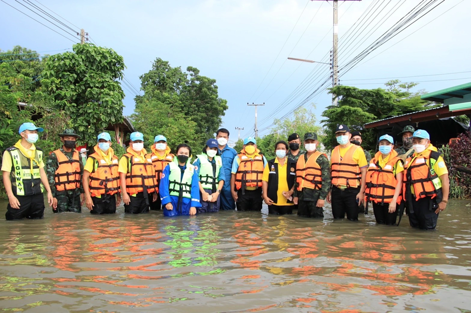 ได้ร่วมกันนำอาหารปรุงสุก ถุงยังชีพ ข้าวสาร อาหารแห้ง น้ำดื่ม จำนวน 200 ชุด มาแจกจ่ายให้กับประชาชนที่ได้รับความเดือนร้อนถึงหน้าบ้าน โดยลุยน้ำที่ท่วมสูงเกือบเมตร โดยการอำนวยความสะดวกจากทหารกองพันพัฒนาที่ 2
