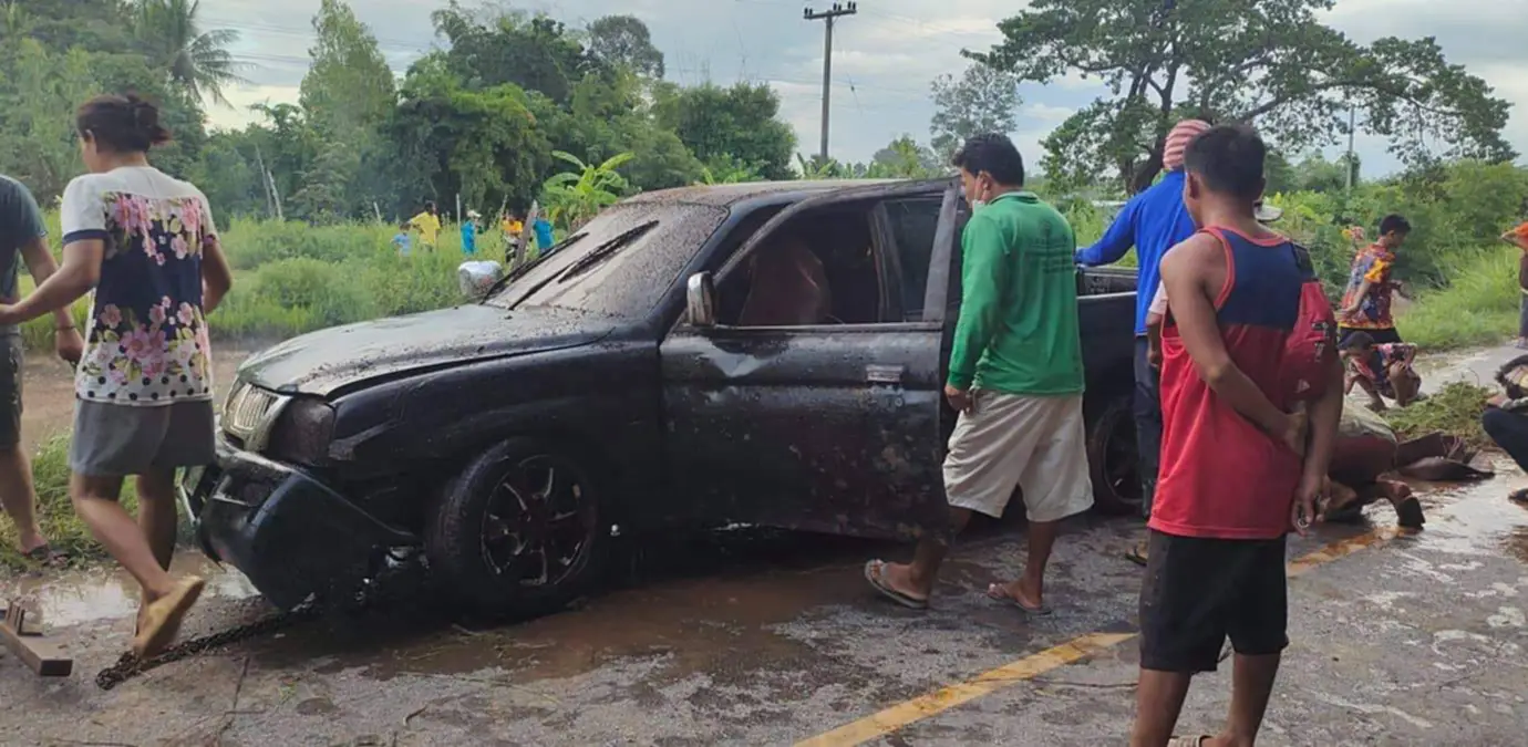 วันที่ 28 กันยายน 2564 ที่สถานีตำรวจภูธรยางตลาด อ.ยางตลาด จ.กาฬสินธุ์ ร.ต.อ.วิรัตน์ วงค์สอน รอง สว.(สอบสวน) สภ.ยางตลาด นายชยพล วัชระอุดมกุล อุปนายกสมาคมกู้ภัยสามัคคีกตัญญูกาฬสินธุ์ และอาสากู้ภัยสามัคคีกตัญญูกาฬสินธุ์ ร่วมกันตรวจสอบสภาพรถกระบะยี่ห้อมิตซูบิชิ สตราดา 2 ตอน สีดำ ไม่ติดแผ่นป้ายทะเบียน หลังจากชาวบ้านพบจมอยู่ในคลองชลประทาน บริเวณบ้านขาม ต.คลองขาม อ.ยางตลาด จ.กาฬสินธุ์ ก่อนแจ้งเจ้าหน้าที่กู้ภัยเก็บกู้ และเคลื่อนย้ายมาทำการตรวจพิสูจน์เพิ่มเติม พร้อมรอเจ้าของรถนำหลักฐานมาแสดงตัว