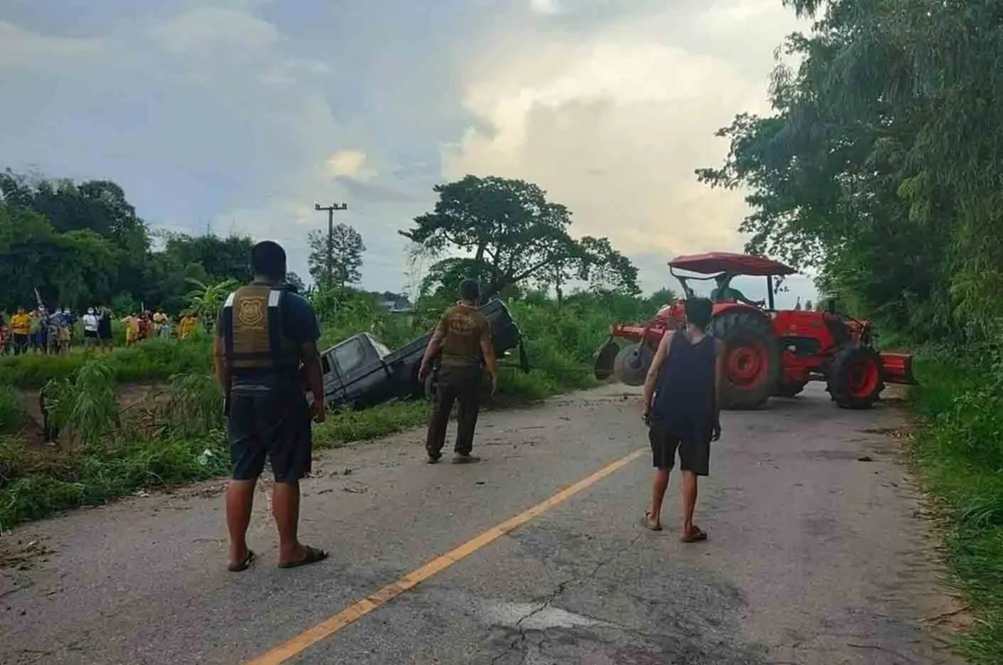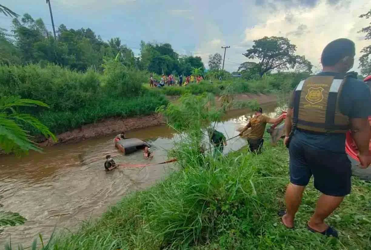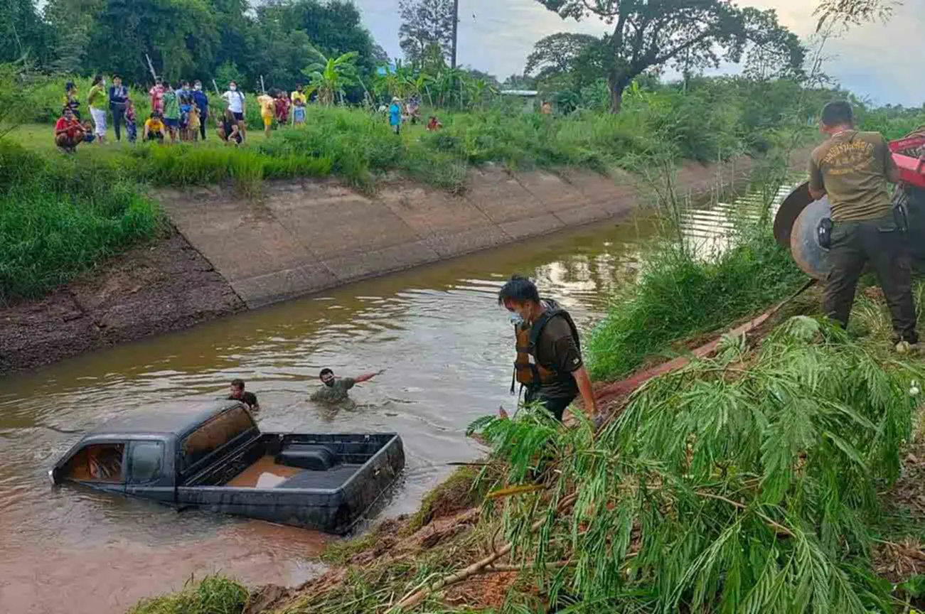 นายชยพล วัชระอุดมกุล อุปนายกสมาคมกู้ภัยสามัคคีกตัญญูกาฬสินธุ์ กล่าวว่า ตามที่เมื่อช่วงเย็นวันที่ 27 กันยายน 2564 เวลาประมาณ 18.00 น. อาสากู้ภัยสามัคคีกตัญญูกาฬสินธุ์ ได้รับการประสานจากเจ้าหน้าที่ตำรวจ สภ.ยางตลาด ให้ร่วมเก็บกู้รถกระบะที่พบจมอยู่ก้นคลองชลประทาน บริเวณบ้านขาม ต.คลองขาม อ.ยางตลาด จ.กาฬสินธุ์ ซึ่งการเก็บกู้เป็นไปด้วยความยากลำบาก เนื่องจากน้ำในคลองชลประทานกำลังลดระดับลงและไหลเชี่ยว ระดับน้ำลึกประมาณ 3 เมตร ทั้งนี้ หลังจากชาวบ้านได้มาพบเห็นจมอยู่ก้นคลองชลประทาน โดยมองเห็นส่วนของหลังคารถโผล่ขึ้นมาเหนือน้ำ จากการสอบถามชาวบ้านบางคน เกิดความสงสัยว่า อาจจะเป็นรถยนต์ที่ประสบอุบัติเหตุขับพุ่งตกคลอง หรือไม่ก็ถูกโจรกรรมมาแล้วมาทิ้งไว้ จึงโทร.แจ้งเจ้าหน้าที่ตำรวจ สภ.ยางตลาดและกู้ภัย เข้าทำการตรวจสอบ