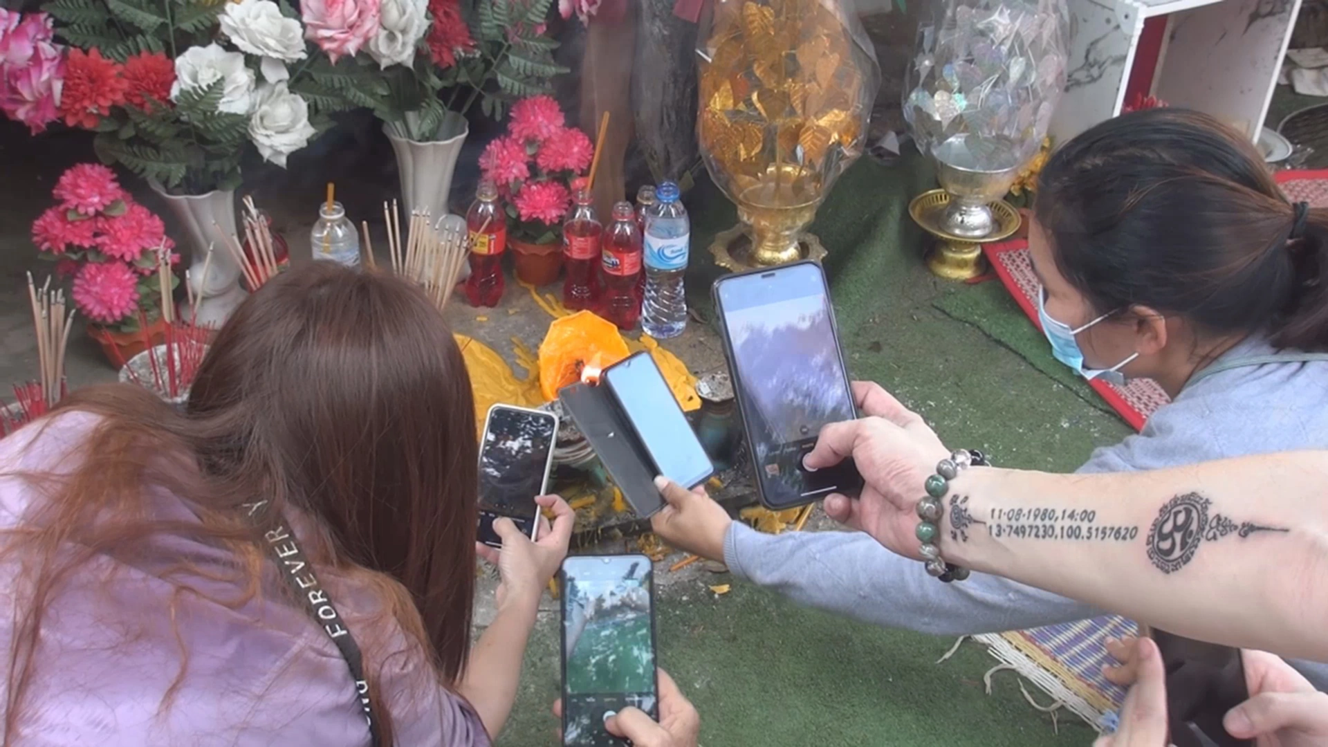 หลังจากนักท่องเที่ยวและคอหวยจาก กรุงเทพมหานคร จ.บึงกาฬ และจ.อุดรธานี ชมความงดงามรอบบริเวณวัด และสักการะสิ่งศักดิ์สิทธิ์เสร็จแล้ว เพราะทุกคนตั้งใจเดินทางจากบ้าน เพื่อมาขอโชคลาภเลขเด็ดจากเจ้าแม่ตะเคียนทองทิพย์ ยกมืออธิฐานจิตขอโชคลาภ โดยมีนายพงศ์พันธุ์ ลิ้มทองสกุล หรืออาร์ต อายุ 41ปี ชาว กทม. เป็นตัวแทนอธิฐานจุดธูปมงคลขอเลขเด็ดเจ้าแม่ตะเคียนทองทิพย์ เนื่องจากเจ้าแม่ฯจะชอบให้เลขเด็ดกับผู้ชาย และทุกครั้งเจ้าแม่ฯจะให้เป็นเลขปริศนา มองไม่ค่อยชัดแล้วแต่ใครจะเห็นเป็นตัวเลขอะไร และจะให้โชคนักท่องเที่ยว จากทางไกลที่ ซึ่งเป็นความเชื่อและศรัทธาส่วนบุคคลที่ห้ามกันไม่ได้