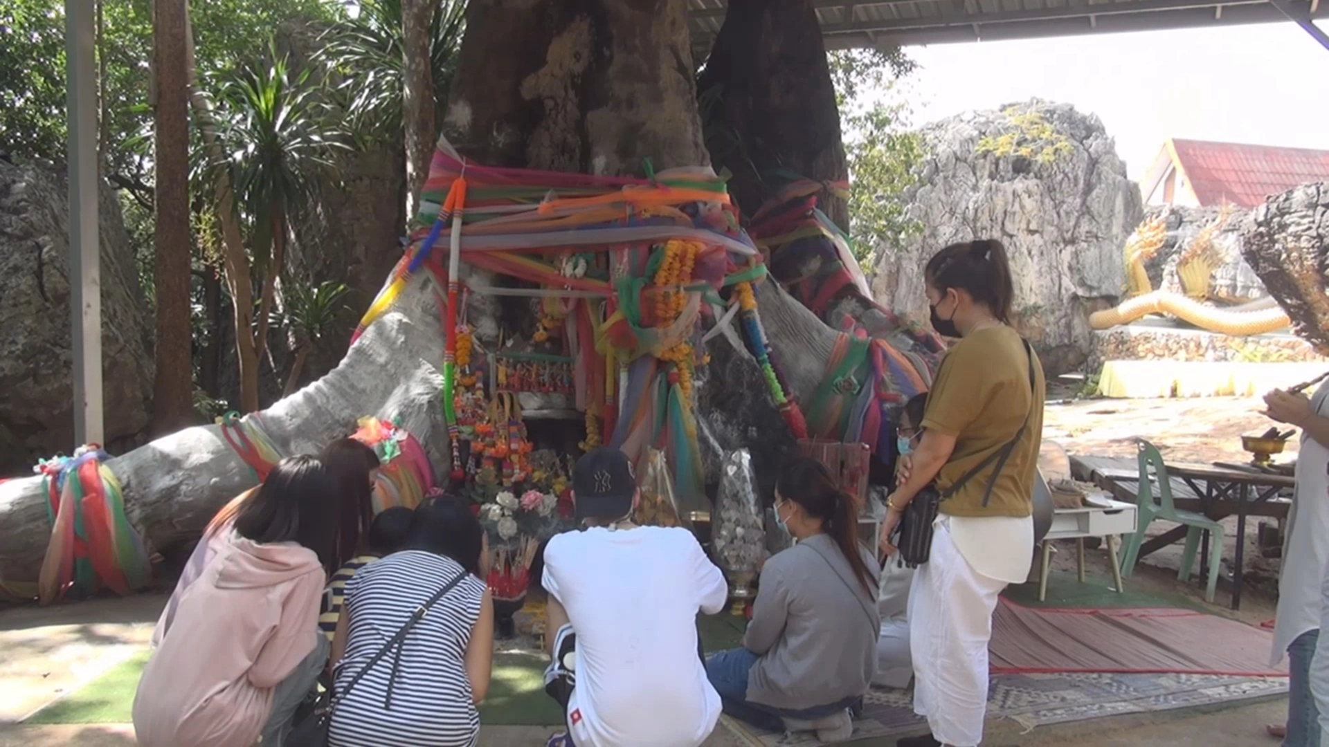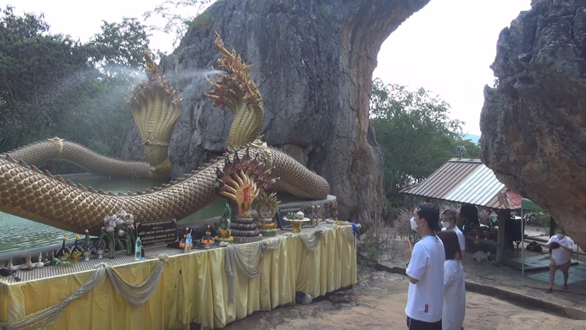 วันที่ 9 ตุลาคม 2564 เวลา14.00 น. ที่วัดภูตะเภาทอง ต.กุดหมากไฟ อ.หนองวัวซอ จ.อุดรธานี มีนักท่องเที่ยว คอหวย สายบุญสายพญานาค ทยอยเดินทางมากราบไหว้ขอโชคลาภ ความรัก และหน้าที่การงาน จากหินตะเภาทอง ปู่หินหยก เจ้าปู่มุจลินท์นาคราช และตอตะเคียนพันปี “เจ้าแม่ทองทิพย์” หลังผ่านจุดคัดกรองการแพร่ระบาดโควิด 19 โดยทุกคนต้องสวมแมสก์ เว้นระยะห่าง อยู่กันเป็นกลุ่มคณะที่มาด้วยกัน ทั้งนี้เพื่อความปลอดภัยของนักท่องเที่ยวทุกคน หากใครไม่ปฏิบัติตาม ทางวัดจะไม่ให้เข้าเยี่ยมชมกราบไหว้ขอโชคลาภเป็นอันขาด