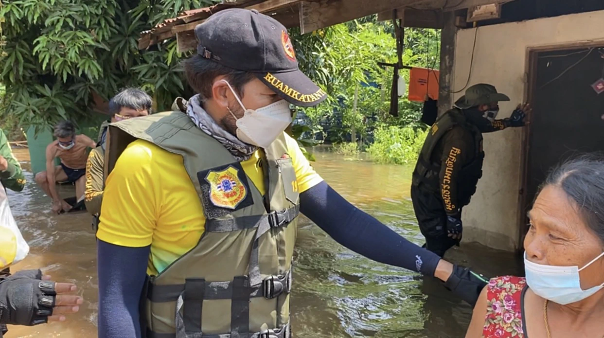 ผู้สื่อข่าวรายงานว่า ช่วงบ่ายวานนี้ ( 9 ต.ค. 2564) บิณฑ์ บรรลือฤทธิ์ ดารานักแสดงและเป็นผู้จัดการฝ่ายกิจกรรมพิเศษ มูลนิธิ ร่วมกตัญญู พร้อมกับเจ้าหน้าที่มูลนิธิร่วมกตัญญู เดินทางลงพื้นที่บ้านหนวงบัวเรียน หมู่ 8 ตำบลยางท่าแจ้ง อำเภอโกสุมพิสัย จังหวัดมหาสารคาม หลังจากทราบว่าในพื้นที่ดังกล่าว น้ำจากแม่น้ำชีได้เอ่อล้นตลิ่งเข้าท่วมชุมชนอย่างหนัก โดยบิณฑ์ ซึ่งเป็นตัวแทนมูลนิธิร่วมกตัญญู ได้นำเรือท้องแบนขนาดใหญ่ พร้อมด้วยถุงยังชีพ แมส ยาสามัญ และเงินสด เข้ามอบช่วยเหลือชาวบ้านในชุมชนแห่งนี้ถึงครัวเรือน โดยมี นาย ประธาน แสนเห็มทอง ผู้ใหญ่บ้านหมู่ 8 พาเข้าข่วยเหลือผู้ประสบภัย