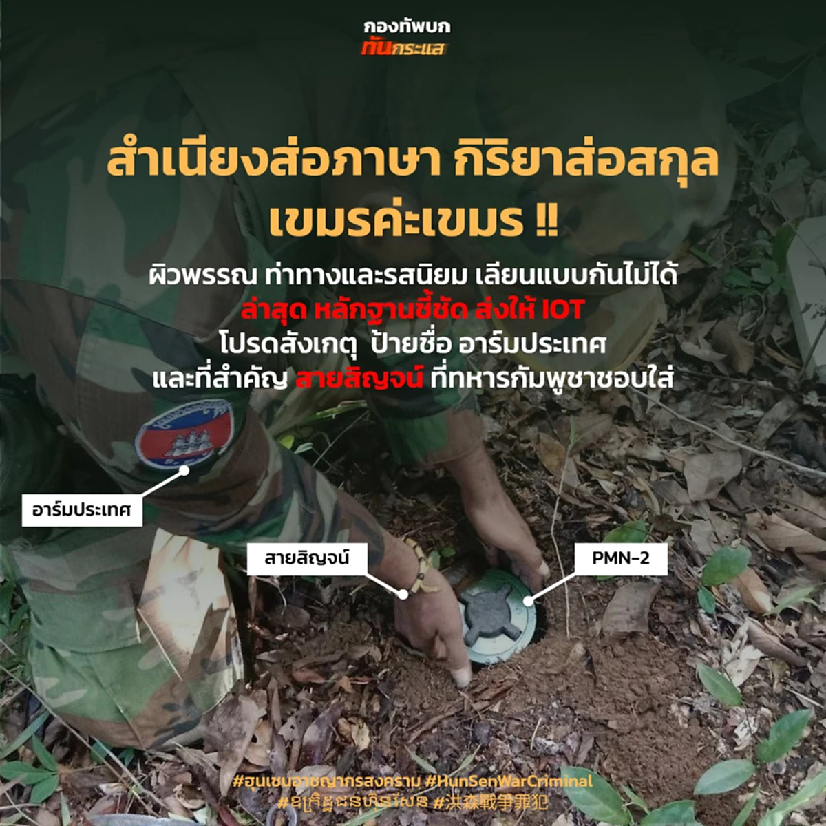 “กองทัพไทย” ยันคลิปภาพทหารเขมร ลักลอบวางทุ่นระเบิด PMN-2 เป็นหลักฐานสำคัญให้โลกรู้ “เขมร” ละเมิดข้อตกลงหยุดยิง – Top News รายงาน
