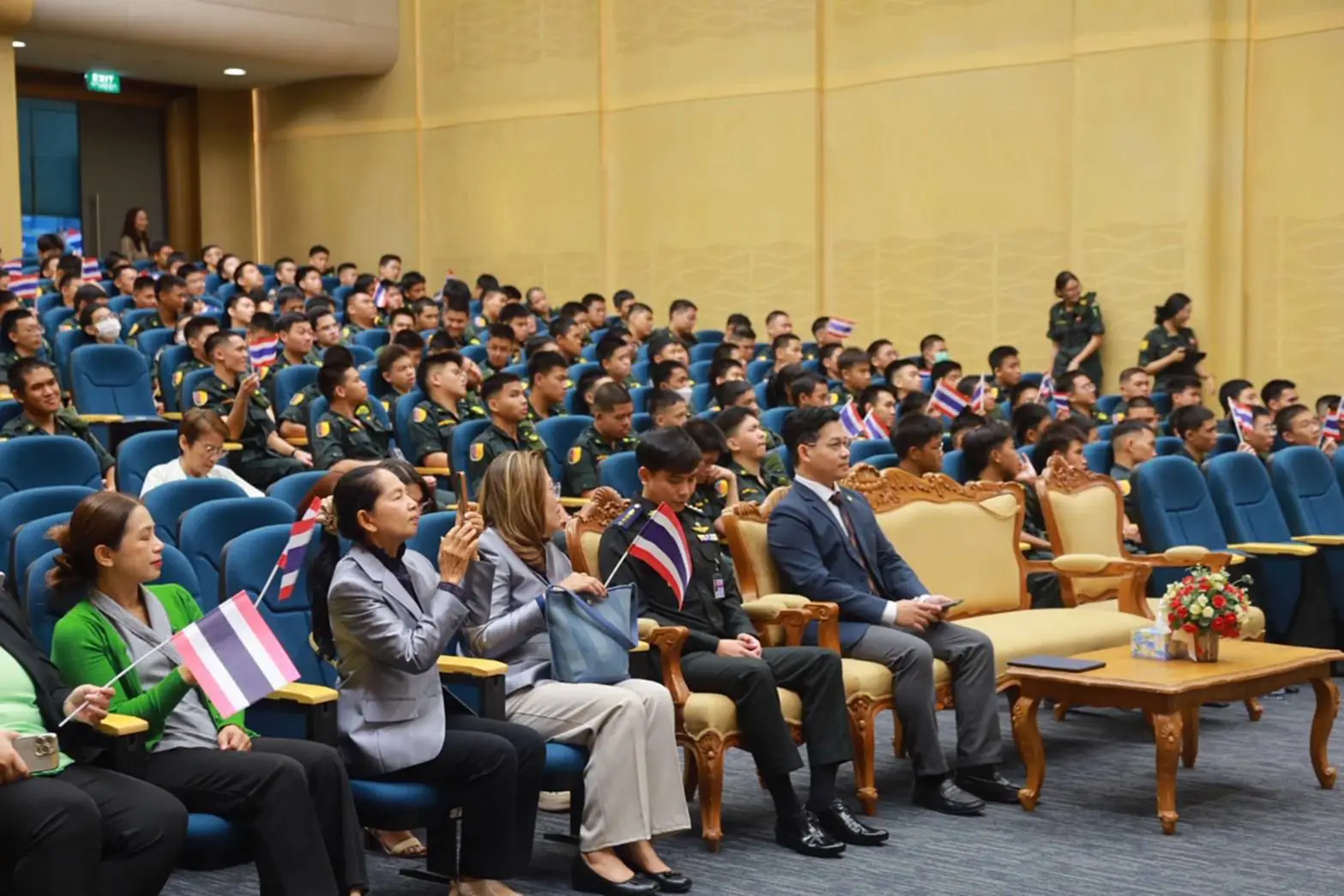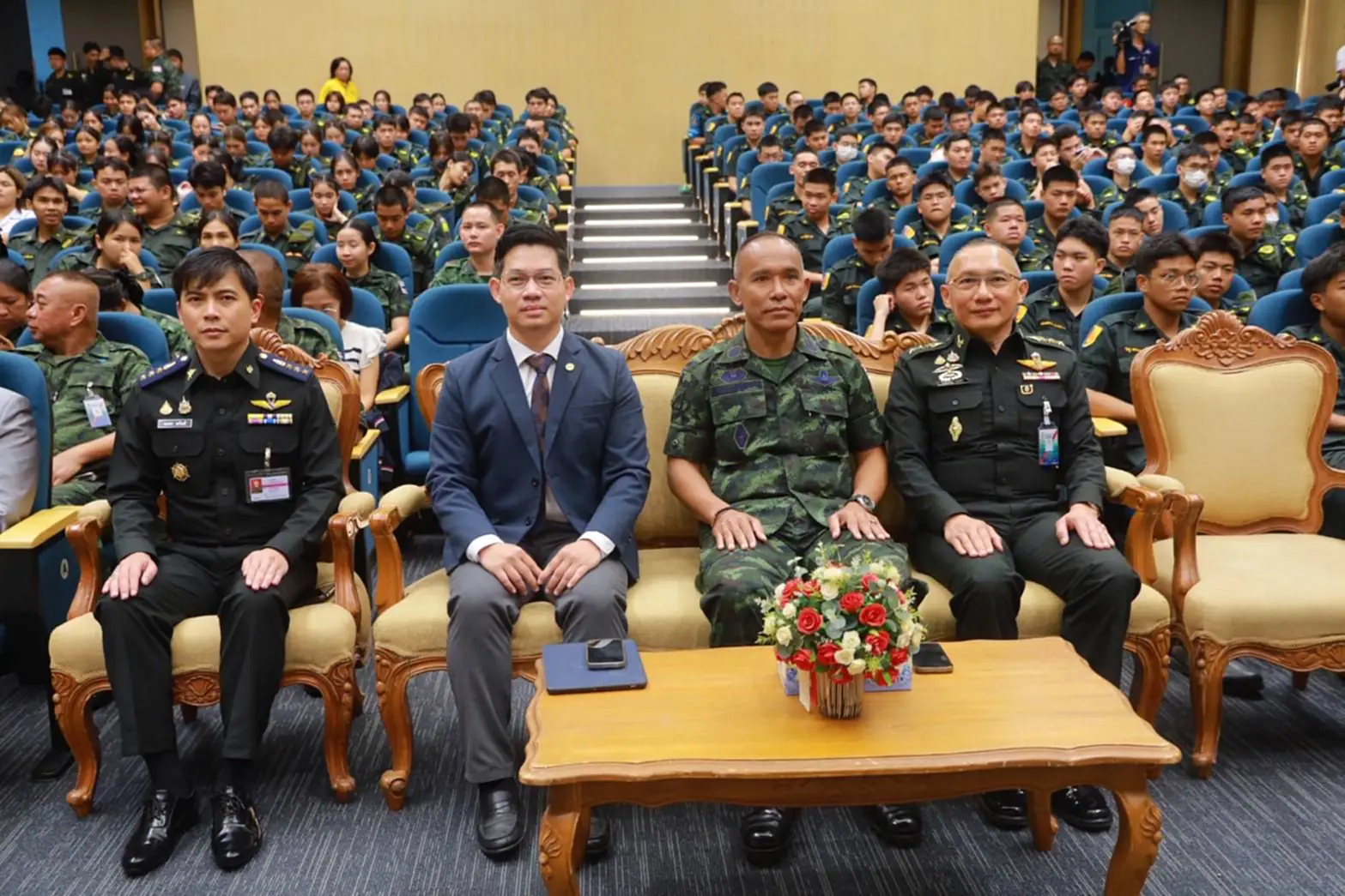มาเป็นวิทยากรบรรยายเรื่อง “นักรบพบ รด. เล่าสู่กันฟัง “เรื่องจริงจากชายแดน: การรักษาอธิปไตยชาติ” โดยกิจกรรมภายในงานมีหลากหลาย อาทิ มีการขับร้องบทเพลงรักชาติ โดยวงดุริยางค์มณฑลทหารบกที่ 14 /ขับร้องเพลงชาติร่วมกัน /สดุดีทหารกล้าปกป้องแผ่นดินไทย/และกิจกรรม “บูรพารวมใจ ส่งกำลังใจให้ทหารแนวหน้าปกป้องอธิปไตยชาติไทย” ทั้งนี้กิจกรรมครั้งนี้ได้รับความสนใจจากผู้บริหาร คณาจารย์ บุคลากรและนักศึกษาวิชาการทหารเข้าร่วมให้กำลังใจเหล่าทหารกล้ากว่า 400 คน จากนั้นประธานในพิธีฯได้ดำเนินการมอบของที่ระลึกให้กับวิทยากรและทีมงานฯและถ่ายภาพหมู่ร่วมกัน