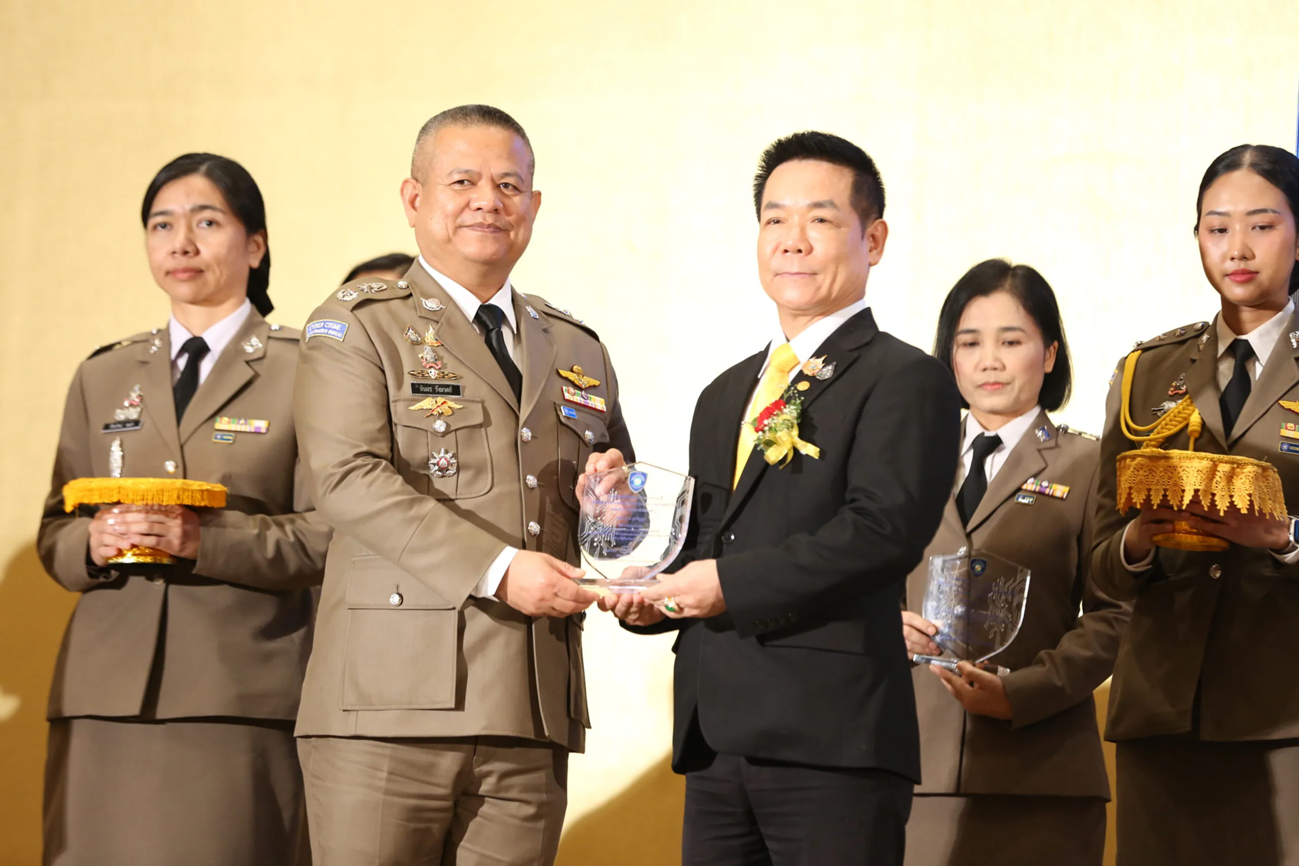 จากนั้น เวลา 11.00 น. พิธีสวมแหวน “อัศวินตำรวจไซเบอร์” เพื่อยกย่องบุคลากรในด้านต่างๆ ที่มีผลงานดีเด่นเป็นประจักษ์ โดยในปีนี้มีข้าราชการตำรวจที่ได้รับมอบการยกย่องและมอบแหวน ได้แก่