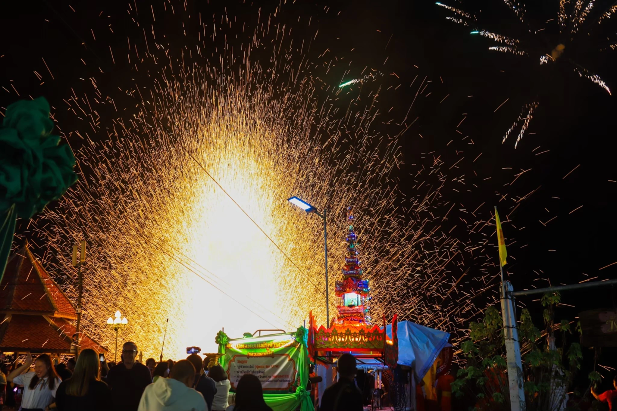 ทั้งนี้เนื่องจากวัดพระธาตุดอยกองมูนั้น อยู่ห่างจากแม่น้ำ ลำคลอง เพราะตั้งอยู่บนภูเขา พระครูอนุสารศาสนกรณ์ อดีตเจ้าอาวาสวัดพระธาตุดอยกองมูสมัยนั้น ได้ร่วมกับคณะศรัทธา ญาติโยม จัดงานประเพณีลอยกระทงสวรรค์ขึ้น เพื่อลอยทุกข์โศก โรคภัย สิ่งไม่ดี ในหนึ่งปีที่ผ่านมา ให้ลอยไปกับกระทงสวรรค์ และเพื่อเป็นการขอขมากับท้องฟ้า สรรพสิ่ง สรรพสัตว์ อันเป็นสิ่งที่มีคุณต่อเราท่านทั้งหลาย และเพื่อขอบคุณในสิ่งต่าง ๆ ขอบคุณเทวดาฟ้าดิน โดยการลอยกระทงขึ้นไปบนท้องฟ้า ซึ่งมีการจัดงานประเพณีนี้มาเป็นเวลา 50 กว่าปีมาแล้ว