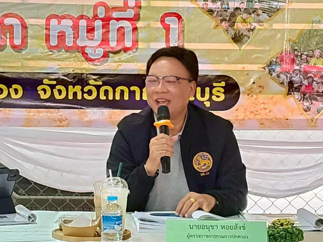 ในการนี้มี นายฑรัท เหลืองสอาด ปลัดจังหวัดกาญจนบุรี นายอัครนันท์ กัณณ์กิตตินันท์ สมาชิกสภาผู้แทนราษฎรจังหวัดกาญจนบุรี เขต 1 และนายสมบูรณ์ แผนสมบูรณ์ นายอำเภอเมืองกาญจนบุรี เข้าร่วม โดยมีนายวินัย โตเจริญ รองอธิบดีกรมการปกครอง ทำหน้าที่ประธานกรรมการตรวจผลงาน