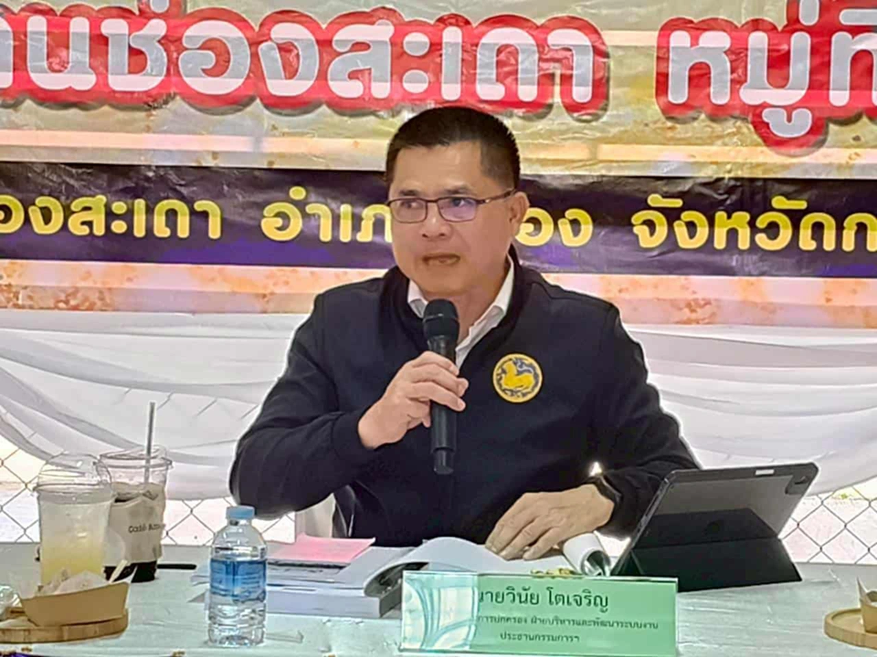 นางละออ ภู่ประดิษฐ ผู้ใหญ่บ้านหมู่ที่ 1 บ้านช่องสะเดา พร้อมคณะกรรมการหมู่บ้าน นำเสนอผลงานความสำเร็จและพาคณะกรรมการลงพื้นที่เยี่ยมชมกิจกรรมเด่นของหมู่บ้าน อาทิ การปลูกป่าหน้าเขื่อนท่าทุ่งนา การเลี้ยงผึ้งและผลิตภัณฑ์จากผึ้ง เส้นทางท่องเที่ยวชุมชนตำบลช่องสะเดา รวมถึงแปลงผักหวานป่า ซึ่งสะท้อนถึงความเข้มแข็งและการพัฒนาชุมชนอย่างยั่งยืน
