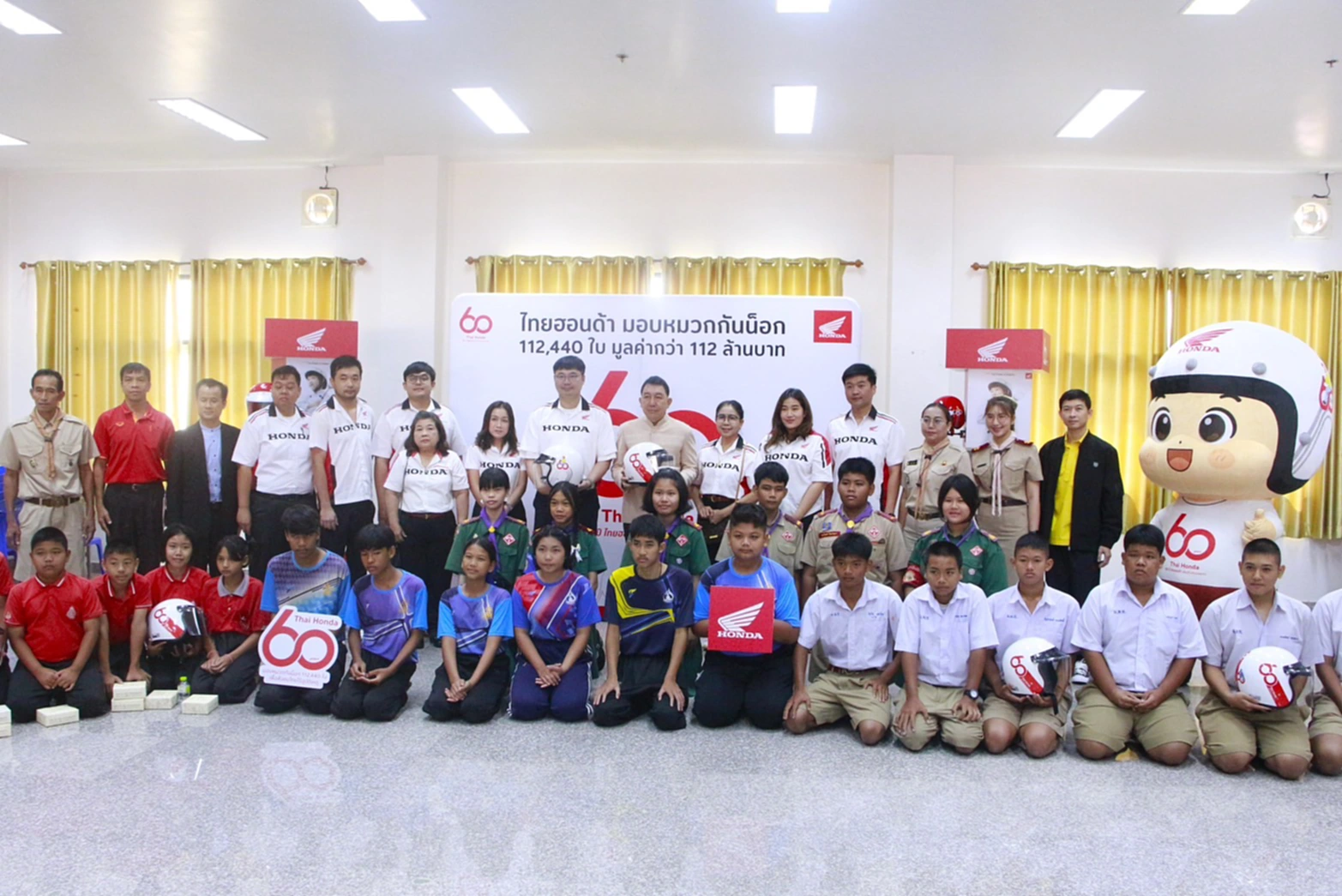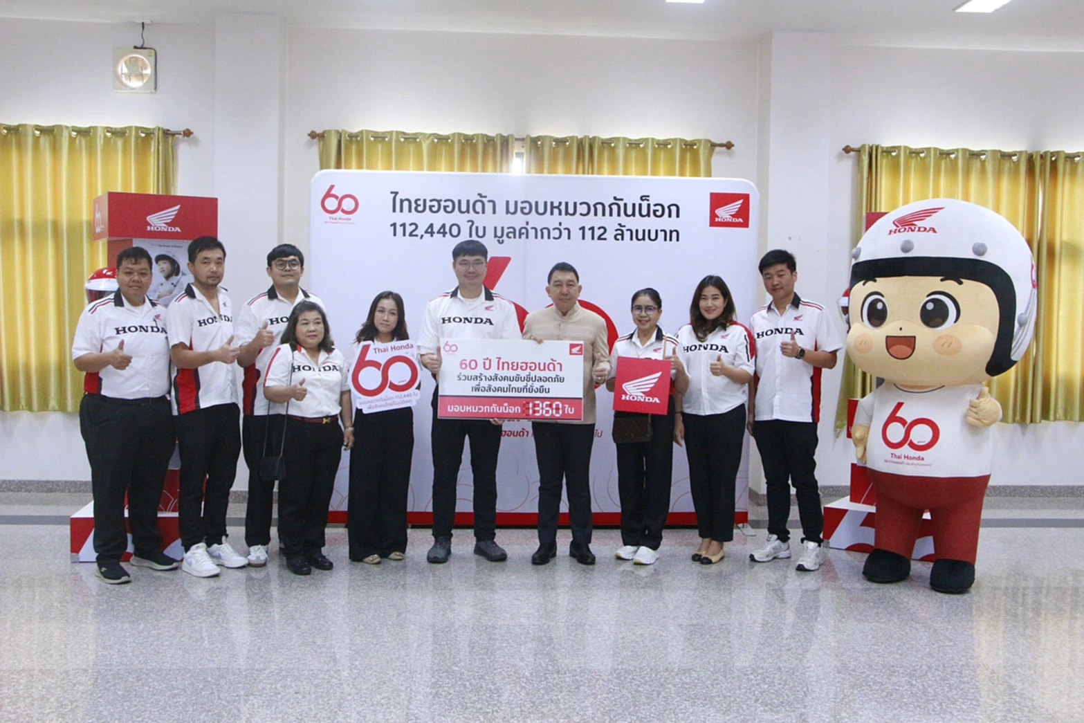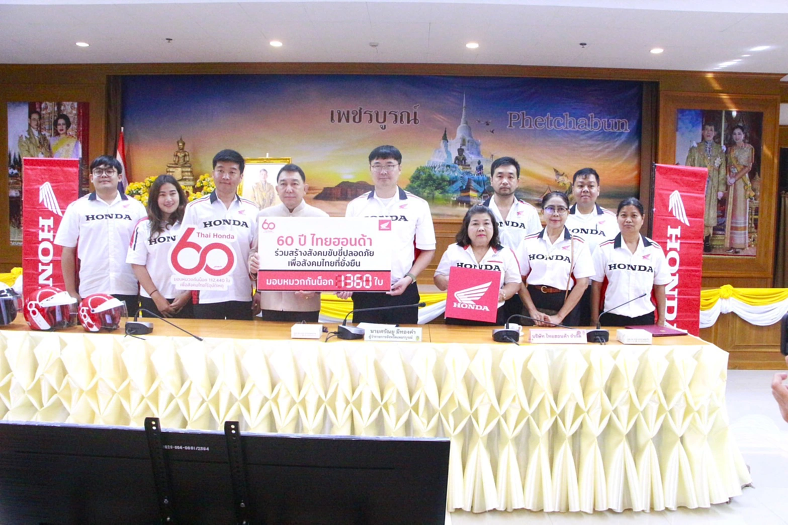 ทั้งนี้ ไทยฮอนด้าได้ส่งมอบหมวกนิรภัยจำนวน 112,440 ใบ รวมมูลค่ากว่า 112 ล้านบาท กระจายให้หน่วยงานต่าง ๆ ทั่ว 77 จังหวัด สำหรับจังหวัดเพชรบูรณ์ ได้รับมอบรวม 1,360 ใบ มูลค่า 582,080 บาท เพื่อนำไปแจกจ่ายผ่านสำนักงานป้องกันและบรรเทาสาธารณภัยจังหวัดเพชรบูรณ์ สถานศึกษาในสังกัดสำนักงานคณะกรรมการการอาชีวศึกษา และสำนักงานคณะกรรมการการศึกษาขั้นพื้นฐาน