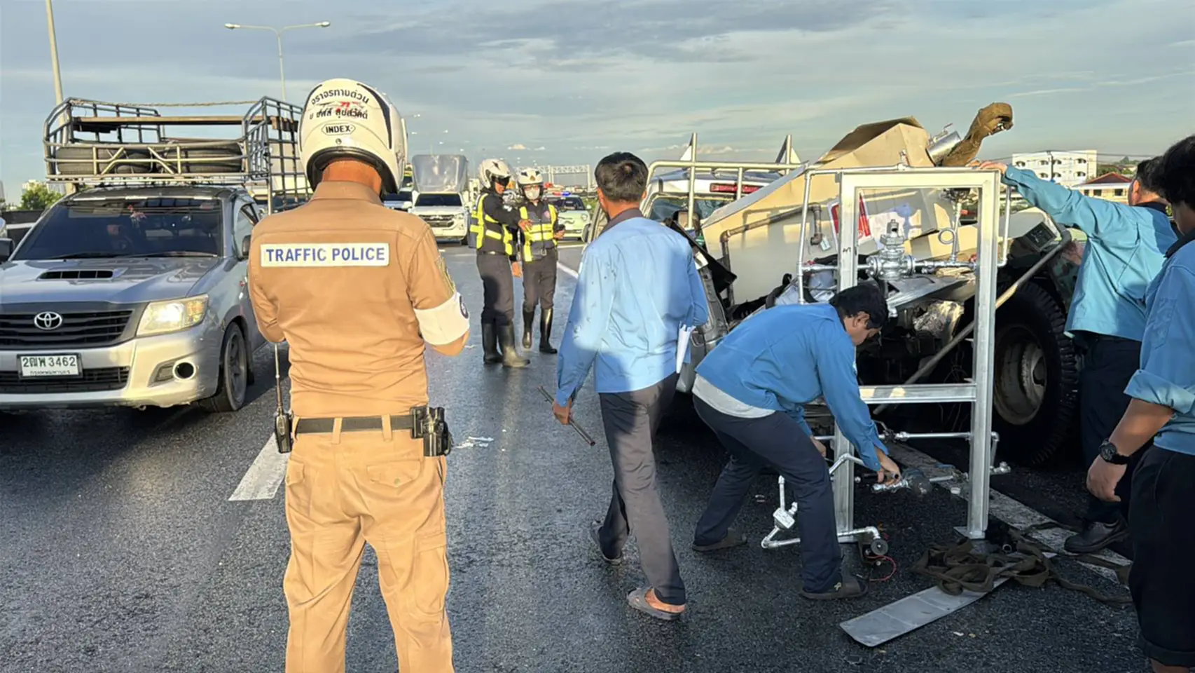 เมื่อเวลา 06.30 น. วันที่ 17 กันยายน 2568 เจ้าหน้าที่ตำรวจทางด่วนกาญจนาภิเษกบางพลี–สุขสวัสดิ์ รับแจ้งเหตุรถกระบะชนท้ายรถบรรทุกพ่วง 18 ล้อ เหตุเกิดที่หลักกิโลเมตร 7+600 ช่องทางซ้ายสุด ขาออกจากด่านปากน้ำ มุ่งหน้าด่านบางพลี จึงประสานกำลังตำรวจจราจรและเจ้าหน้าที่กู้ภัยทางด่วนเข้าตรวจสอบ