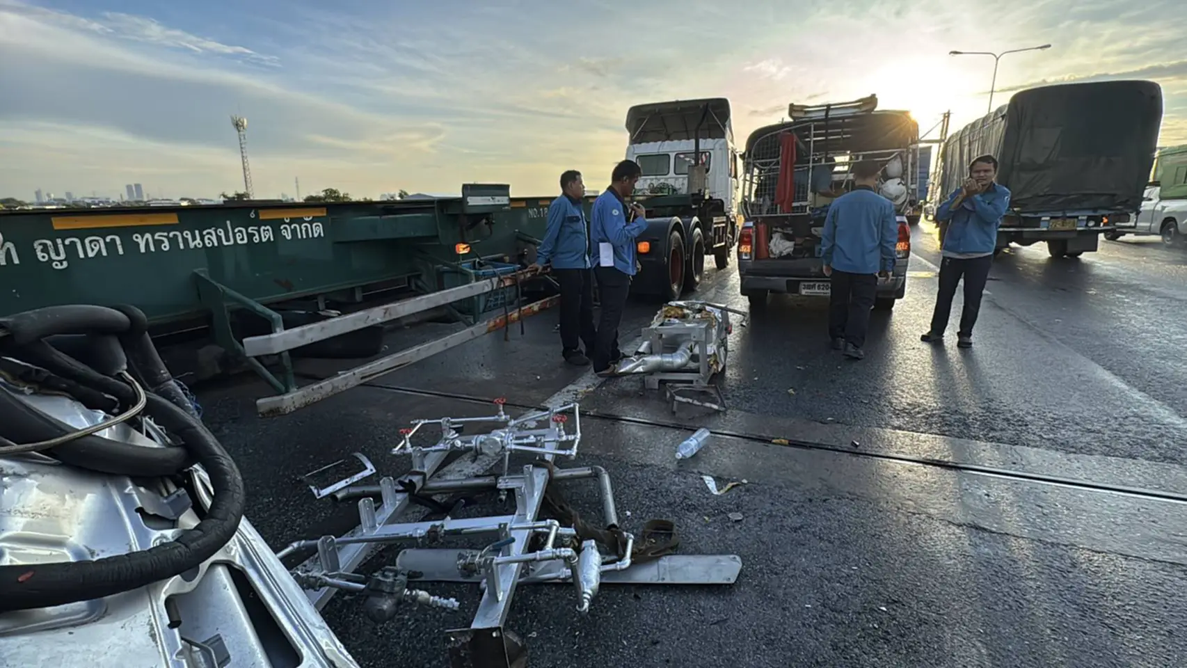 สมุทรปราการ กระบะชนท้ายรถพ่วงจอดเสียพังยับ เจ้าหน้าที่เตือนอย่าวิ่งทางฉุกเฉิน