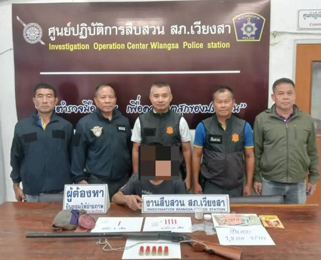 ตำรวจแจ้งข้อหาหนักทั้ง “มียาเสพติดเพื่อจำหน่าย – เสพยาบ้า – ครอบครองอาวุธปืน และกระสุน โดยไม่ได้รับอนุญาต” ก่อนคุมตัวส่งพนักงานสอบสวน สภ.เวียงสา เพื่อขยายผลและดำเนินคดีตามกฎหมาย