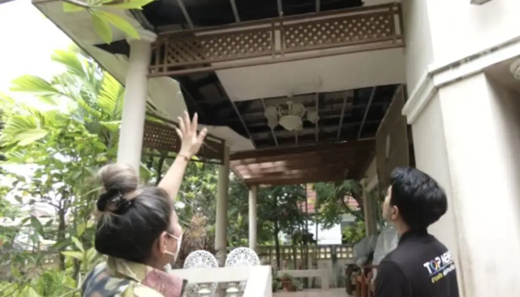 แต่ปรากฎว่าในช่วงวันที่ 14 พฤษภาคม 2568 นั้น ปรากฎว่าระเบียงหน้าบ้านได้มีการแตกร้าวทรุดตัวเสียหายเพิ่มขึ้น และฝ้าเพดานหน้าระเบียงบ้านได้มีการพังถล่มเสียหายเพิ่มขึ้น