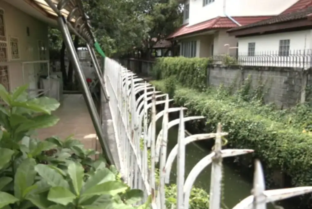ทำให้ดินภายใต้อาคารและบริเวณบ้าน ไหลลงสู่คลองด้านหลังบ้าน อย่างต่อเนื่อง จนทำให้บ้านได้รับความเสียหายเป็นจำนวนมาก