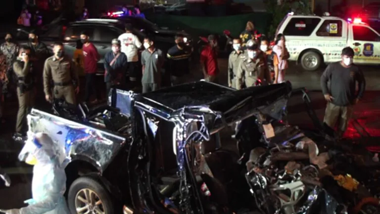 เบื้องต้นจากการตรวจสอบบริเวณที่เกิดเหตุบนถนนสาย 33 สุวรรณสรณ์ สระแก้ว-กบินทร์บุรี มุ่งหน้าสี่แยกสามทหาร บริเวณยูเทิร์นตรงข้ามทางเข้าวัดบ้านไผ่ในพื้นที่ ม.8 ต.เมืองเก่า อ.กบินทร์บุรี จ.ปราจีนบุรี พบป้ายทะเบียนของรถยนต์กระบะและเศษชิ้นส่วนของรถกระจายเกลื่อนถนนบริเวณยูเทรินพบรถเทลเลอร์หัวลาก 20 ล้อ บรรทุกท่อน้ำ ยี่ห้อ HINO สีขาว ทะเบียนตัวแม่ 70-1125 สมุทรสงคราม ทะเบียนตัวลูก 70-1504 สมุทรสงคราม จอดอยู่ บริเวณตัวปั่นขาตั้งห่าง เก๊ะ ราวกั้นสุนัข และช่วงล่าง ของรถเทลเลอร์ บิดเสียหาย บริเวณกลางรถพบกับรถยนต์กระบะ อีซูซุดีแมคซ์ สีดำ 4 ประตู ป้ายแดง ทะเบียน ส 9728 กทม ได้พุ่งชนเข้าไปที่บริเวณกลางรถเทเลอร์หัวลากสภาพด้านหน้าของรถยนต์กระบะถูกอัดเข้ากับช่วงล่างของรถเทรลเลอร์หัวลากทำให้ด้านหน้าไปจนถึงบริเวณห้องผู้โดยสารยุบพังยับเยินเกือบทั้งคัน ภายในรถยนต์กระบะพบศพผู้เสียชีวิตชาย 1 ราย รูปร่างเล็กตัดผมเกรียน สวมกางเกงยีนต์ขายาวสีดำสวมเสื้อยืดสีม่วงใส่เสื้อคลุมแขนยาวสีดำสวมรองเท้าผ้าใบสีฟ้าได้เสียชีวิตในที่เกิดเหตุโดยถูกอัดติดอยู่ภายในรถยนต์กระบะคันดังกล่าว