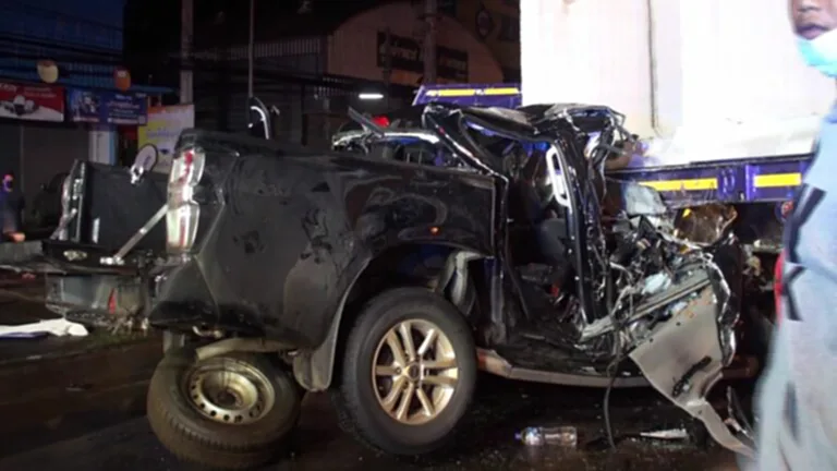 ด้าน น.ส.ลัดดาวัลย์ พรมมาก อายุ 26 ปี กล่าวว่าตอนที่เราจะเลี้ยวเราก็ได้เปิดไฟเลี้ยวมา พอเลี้ยวรถได้เกือบจะถึงครึ่งตัวรถแล้วได้ยินเสียตู้มทีเดียวตนคิดว่ายางรถตัวเองแตก จึงได้ให้น้องชายลงไปดูพอน้องชายลงมาดูก็เดินมาบอกว่ารถ ก็เลยพากันลงมาดู ตอนที่เราจะเลี้ยวรถแฟนได้เห็นว่ารถกระบะคันนี้อยู่ไกลสุดเลย