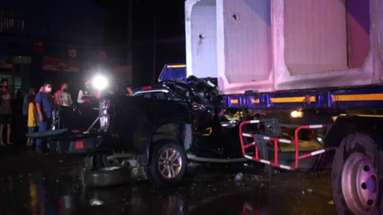 จากการสอบถาม นายสุทธิพงษ์ แก้วคำจันทร์ อายุ 25 ปี (ผู้เห็นเหตุการณ์) กล่าวว่วตนขับรถมาจากสระแก้วแล้วรถยนต์กระบะคันนี้ได้ขี่แซงตนมา ตนยังพูดอยู่ว่าทำไมมาเร็วจังไม่เบรคเลยแต่พอมาเห็นอีกทีก็อยู่ตรงนี้แล้ว แต่รถเทรลเลอร์คันนี้เขาเลี้ยวจะพ้นแล้วแต่รถยนต์กระบะมาแบบไม่เบรกไม่มีรอยเบรคอะไรเลยเลยซัดตู้มเข้าไป