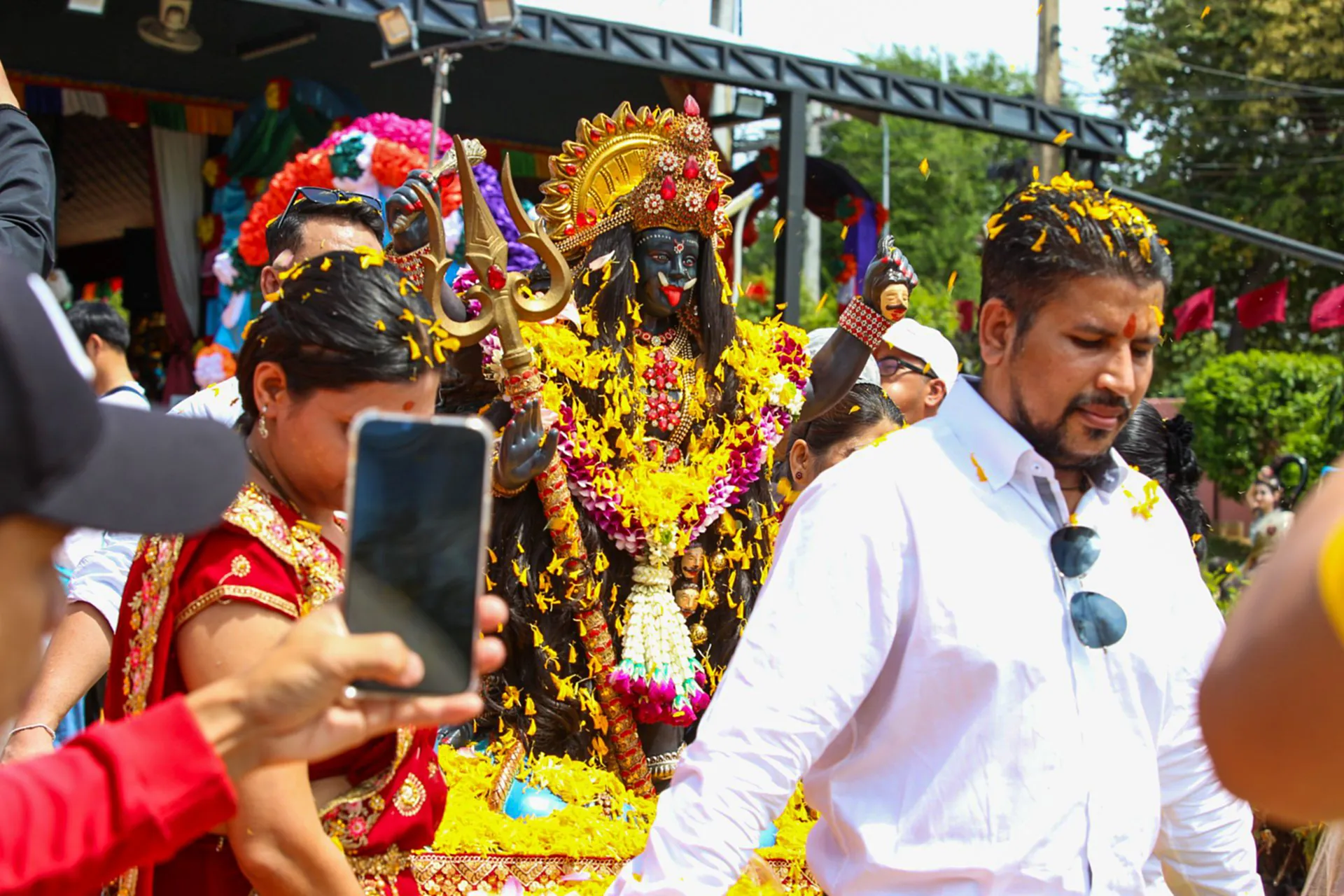 เทวาลัยมหากาลีอวตารจักรวาลชนนี ร่วม สมาคมภารัต (อินเดีย) ชลบุรี นำโดยนางอำพร แก้วแสง ผู้ก่อตั้งเทวาลัยมหากาลีอวตารจักรวาลชนนี พร้อมด้วย ดร.ดีโอ กูมาร์ ซิงค์ นายกสมาคมภารัต (อินเดีย) ชลบุรี, นายนเรช จันเดอร์ รองนายกสมาคมภารัต (อินเดีย) ชลบุรี, และผู้มีจิตศรัทธา ร่วมจัดพิธีอัญเชิญองค์เทวรูปพระแม่กาลี พระแม่ดุรกา พระแม่มารีอัมมัน พระแม่จามนทรา พระแม่สุรัสวดี และพระพิฆเนศ ออกมาแห่รอบเมืองพัทยา เพื่อให้ผู้ที่ศรัทธาได้สักการบูชา เนื่องในงาน “นวราตรี” วันแห่งชัยชนะ ซึ่งจัดขึ้น ระหว่างวันที่ 22-30 กันยายน 2568 ตลอด 9 วัน 9 คืน ณ เทวาลัยมหากาลีอวตารจักรวาลชนนี