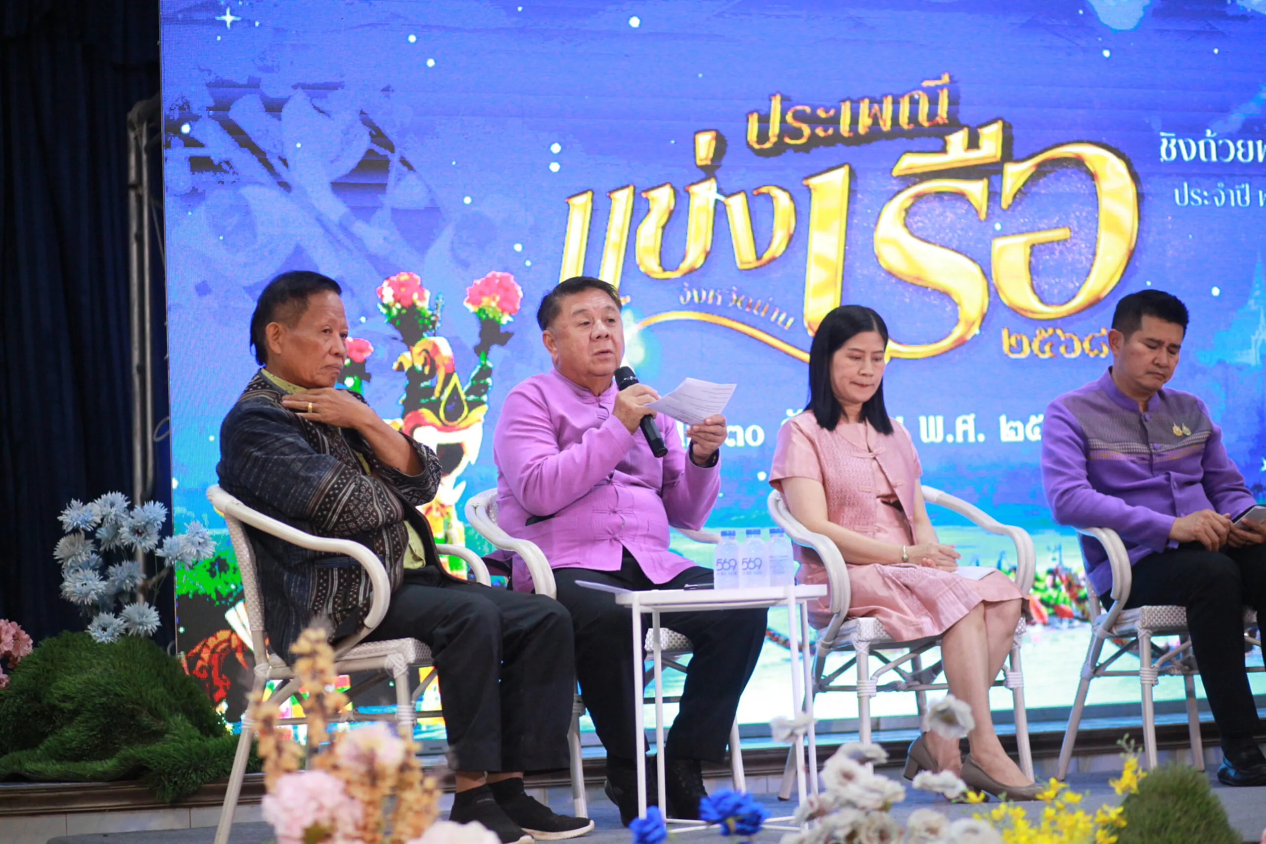 วันที่ 30 กันยายน 2568) เวลา 17.00 น. ณ บริเวณข่วงเมืองน่าน อำเภอเมืองน่าน จังหวัดน่าน จังหวัดน่าน สำนักงานวัฒนธรรมจังหวัดน่าน จัดงานแถลงข่าวการจัดงานประเพณีแข่งเรือชิงถ้วยพระราชทานฯ ประจำปี 2568 ควบคู่กับพิธี “สู่ขวัญเรือ” อันเป็นพิธีกรรมดั้งเดิมที่สืบทอดกันมาแต่โบราณ เพื่อบูชาแม่น้ำน่านและสิ่งศักดิ์สิทธิ์ เสริมสิริมงคลแก่เรือแข่ง ฝีพาย และชุมชน ถือเป็นจุดเริ่มต้นของฤดูกาลแข่งเรือประเพณีจังหวัดน่านในปีนี้