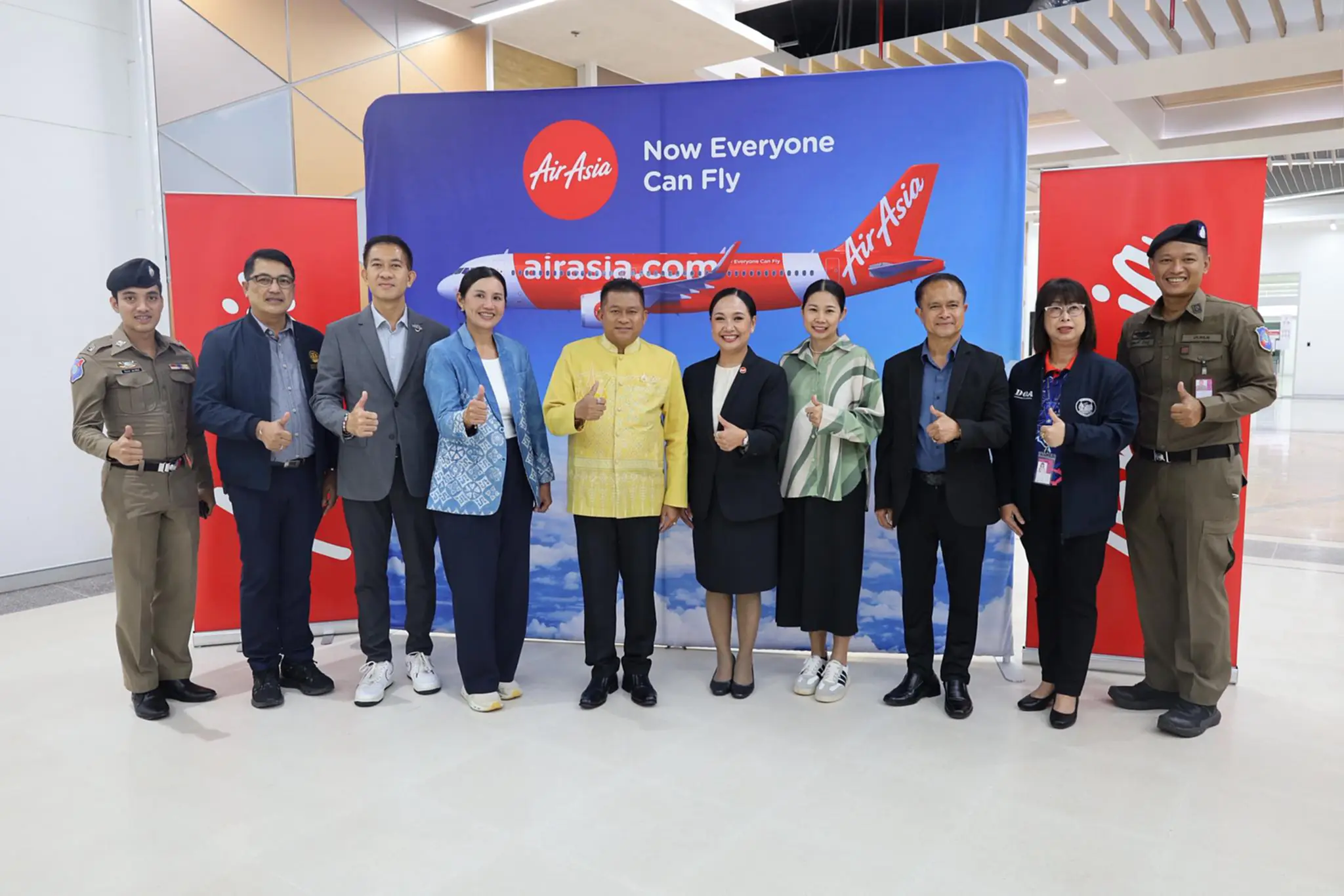 วันที่ 1 ต.ค. 2568 นายสมชาย ลีหล้าน้อย ผู้ว่าราชการจังหวัดนครศรีธรรมราช พร้อมด้วย น.ส.เดือนเพ็ญ ศรีเพชร ประธานหอการค้าจังหวัด นายมนตรี มานะต่อ ผู้อำนวยการการท่องเที่ยวแห่งประเทศไทย สำนักงานนครศรีธรรมราช น.ส.จิรานันต์ พนาลี ผู้จัดการแอร์เอเชีย ประจำท่าอากาศยานนครศรีธรรมราช ผู้แทนหน่วยงานองค์กรภาคเอกชน ตัวแทนผู้ประกอบการธุรกิจการท่องเที่ยว และสื่อมวลชน ร่วมให้การต้อนรับผู้โดยสารสายการบินแอร์เอเชีย เที่ยวบินปฐมฤกษ์จากสนามบินสุวรรณภูมิมายังท่าอากาศยานนครศรีธรรมราช ซึ่งเปิดทำการบินเป็นครั้งแรกในวันนี้ (1 ต.ค.) โดยบรรยากาศเป็นไปอย่างอบอุ่น