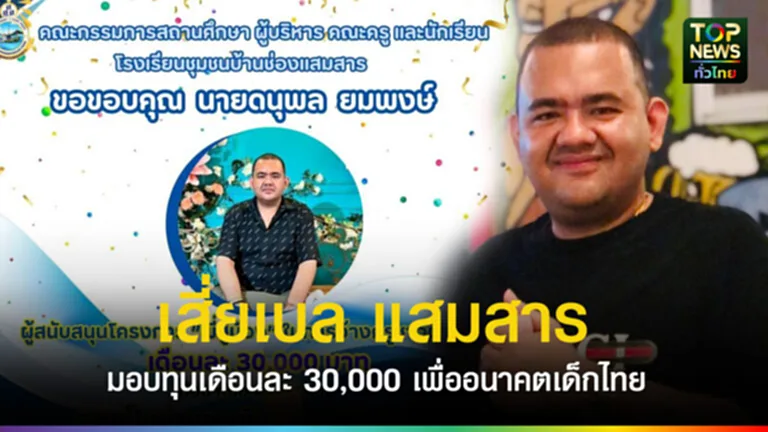 “เสี่ยเบล แสมสาร” เติมโอกาสการศึกษา มอบทุนเดือนละ 30,000 สะสมยอดรวม 1.5 แสนบาท