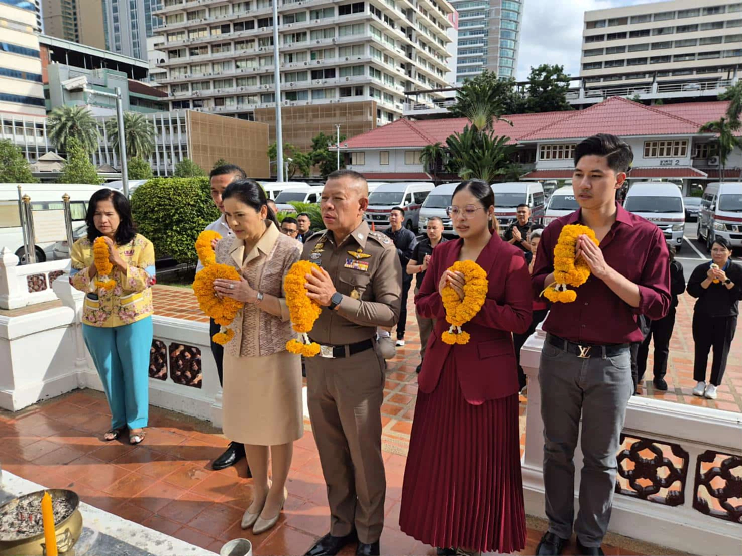 พร้อมด้วยคุณนภัสนันท์ วุฒิจรัสธำรงค์ อุปนายกสมาคมแม่บ้านตำรวจ และครอบครัว ได้ร่วมกันสักการะสิ่งศักดิ์สิทธิ์ภายในสำนักงานตำรวจแห่งชาติ เพื่อความเป็นสิริมงคลในโอกาสเกษียณอายุราชการ