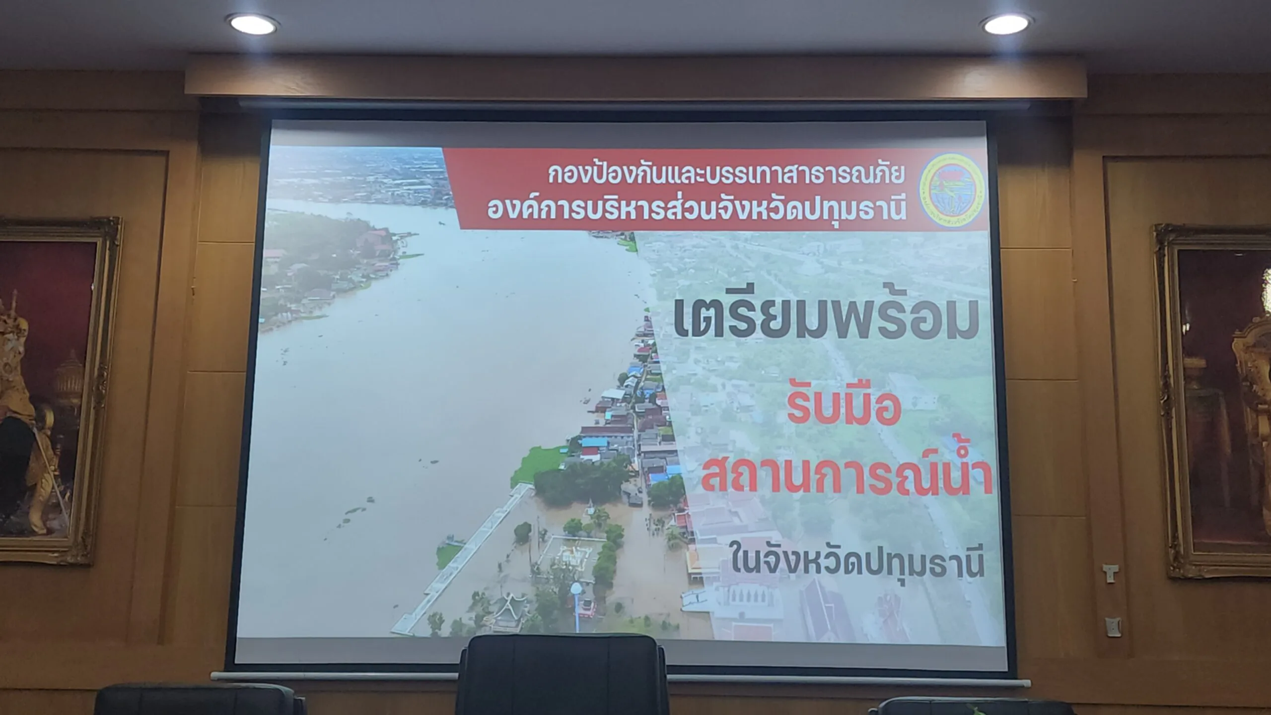 โดย พลตำรวจโท คำรณวิทย์ ธูปกระจ่าง นายกองค์การบริหารส่วนจังหวัดปทุมธานี กล่าวว่า จากสถานการณ์ น้ำในพื้นที่จังหวัดปทุมธานี จากการติดตามผลจากดาวเทียม และ ข้อมูลข่าวสาร ทั้งหมดเราคาดว่า หลังจากนี้ไปโดยเฉพาะวันที่ 3 ตุลาคม ปทุมธานีเราจะเจอทั้งน้ำเหนือ น้ำฝนที่ตกลงมา และน้ำทะเลหนุน ถ้าหากทั้งหมดมารวมกัน ประชาชเราจะเดือดร้อน เราจึงมาประสาน ชลประทาน ตรึงมวลน้ำเหนือ 2,200 ลูกบาทเมตรต่อวินาที มา 2 อาทิตย์ แต่ตอนนี้ ปรับขึ้นไปเป็น 2,300 ลูกบาทเมตรต่อวินาที และทาง อบจ.ปทุมธานี ได้คาดการณ์ไว้ว่า อาจจะมากถึง 2,500 ลูกบาทเมตรต่อวินาที จึงอยากฝากเตือนพี่น้องประชาชน ให้ระมัดระวัง เก็บของขึ้นที่สูง และตอนนี้ ทางอ บจ.ปทุมธานี ได้ รับการสนับสนุนงบจากสมาคมองค์การบริหารส่วนจังหวัดแห่งประเทศไทย 300,000 บาท จัดหาเครื่องตรวจ ไฟรั่ว จากทาง สถาบันเทคโนโลยีพระจอมเกล้าเจ้าคุณทหารลาดกระบัง เพื่อแจกจายให้กับ อปท. และ ประชาชนที่ถูกน้ำท่วม ซึ่งการประชุมในวันนี้ เป็นการหาแนวทางในการช่วยเหลือประชาชน นอกจากนี้ทาง อบจ.ปทุมธานี ได้ตั้ง กองอำนวยการป้องกันน้ำท่วมขึ้นมาแล้ว หากใครได้รับผลกระทบ สามารถแจ้งมาได้ที่กองอำนวยการ เราพร้อมให้ความช่วยเหลือ