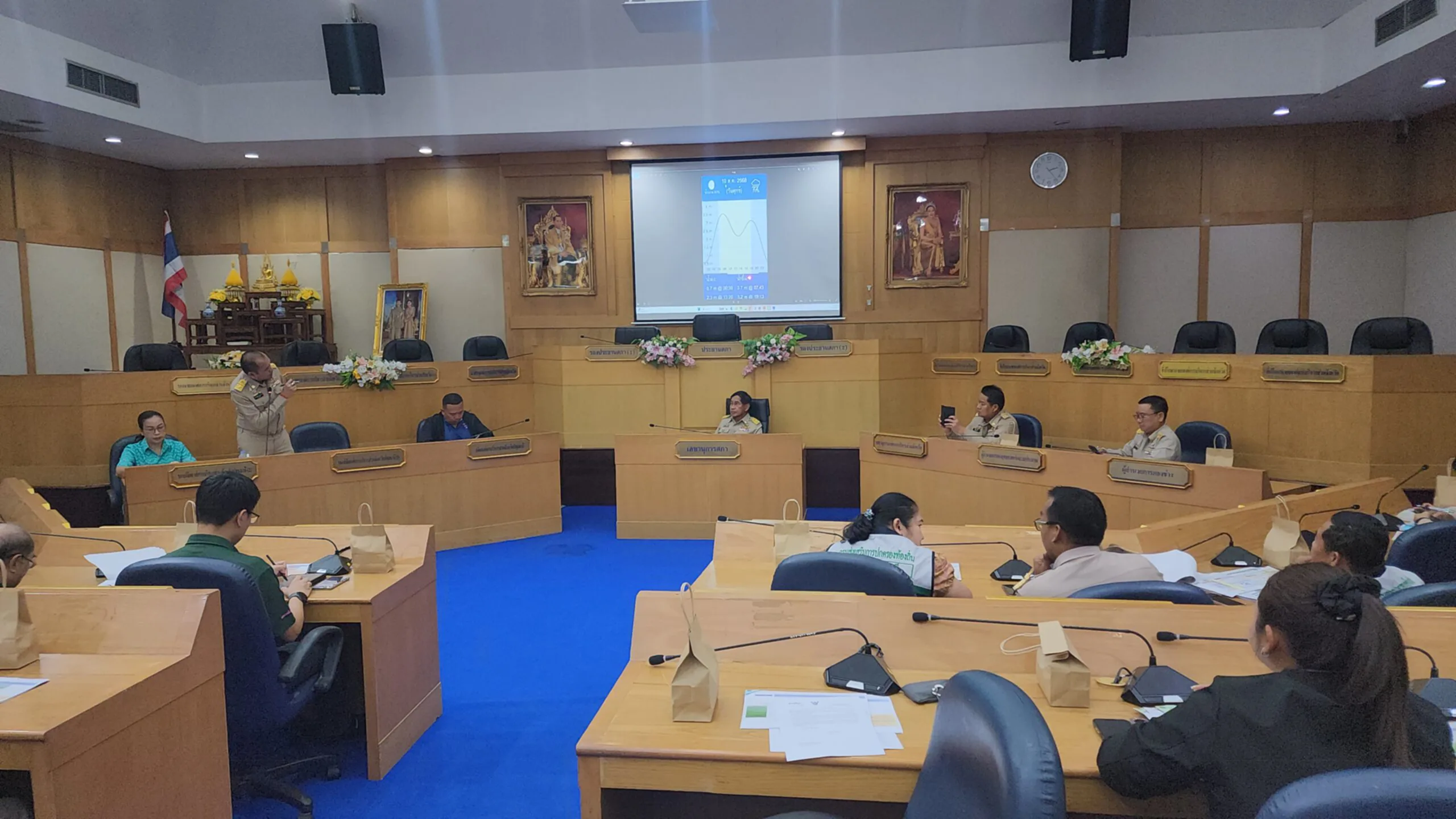 เมื่อเวลา 14.00 น. วันที่ 1 ตุลาคม 2568 ที่ ณ ห้องประชุมปิยลาภ (ชั้น 5) องค์การบริหารส่วนจังหวัดปทุมธานี พลตำรวจโท คำรณวิทย์ ธูปกระจ่าง นายกองค์การบริหารส่วนจังหวัดปทุมธานี เป็นประธานการประชุมเตรียมรับสถานการณ์น้ำท่วมในจังหวัดปทุมธานี โดยมีนายเทพสุริยา สะอาด ท้องถิ่นจังหวัดปทุมธานี นายนพพร ขาวขำ รองนายก อบจ.ปทุมธานี ร้อยตำรวจเอก ดร.ตรีลุพธ์ ธูปกระจ่าง นายกเทศมนตรีนครรังสิต คณะผู้บริหาร สมาชิกสภาองค์การบริหารส่วนจังหวัดปทุมธานี นายกและผู้แทนองค์กรปกครองส่วนท้องถิ่นที่มีพื้นที่ติดกับแม่น้ำเจ้าพระยา หัวหน้าส่วนราชการ และเจ้าหน้าที่ที่เกี่ยวข้อง