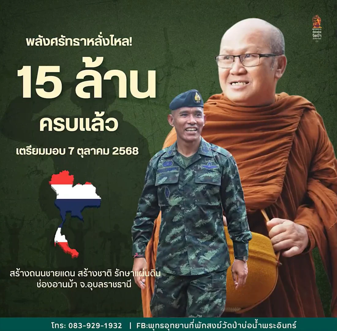 วันที่ 2 ตุลาคม 2568 จากกรณี พล.ต.ณัฏฐ์ ศรีอินทร์ รองแม่ทัพภาคที่ 2 พร้อมคณะนายทหาร เข้ากราบนมัสการ และ สนทนาธรรม กับหลวงตาสินทรัพย์ จรณธัมโม (พระสิ้นคิด) พร้อมถึง โครงการก่อสร้างถนนป้องกันชายแดนต่อหลวงตาสินทรัพย์ จนเป็นประเด็นดราม่า ทำไมไม่ใช้งบประมาณของกองทัพ จนหลวงตาสินทรัพย์ต้องออกมาชี้แจงว่า กองทัพไม่ได้มาขอแต่หลวงตาเห็นความสำคัญจึงรับเป็นเจ้าภาพระดมทุนให้ เมื่อวันที่ 28 กันยายน 2568 ที่ผ่านมา
