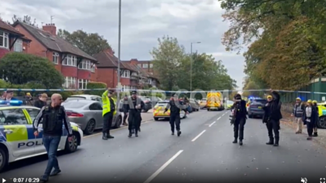 BBC, CNN, และ AFP รายงานข่าวด่วนว่าตำรวจอังกฤษได้รับแจ้งเหตุร้ายเมื่อเวลา 0931 นาฬิกาที่ผ่านมาตามเวลาท้องถิ่น (พฤหัสที่ 2 ตค.) หรือ 1531 นาฬิกาตามเวลาไทยว่าเกิดเหตุคนร้ายขับรถยนต์สีดำพุ่งชนฝูงชนใกล้กับโบสถ์ยิวฮีตัน พาร์ค ที่เขตครัมป์ซอลล์ ทางเหนือของเมืองแมนเชสเตอร์ ก่อนแทงเจ้าหน้าที่รักษาความปลอดภัย