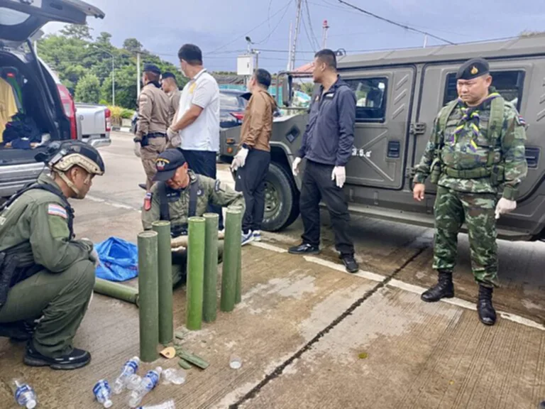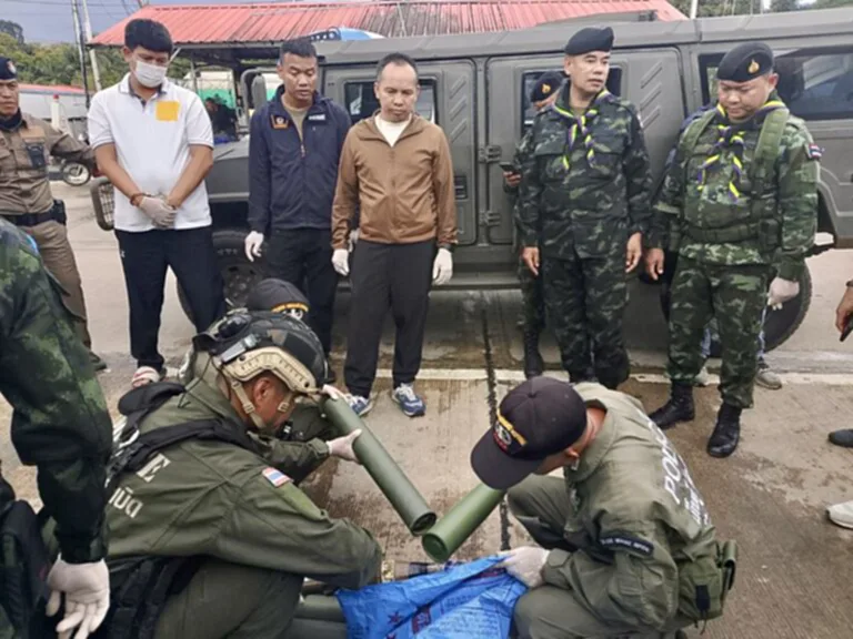 1. ลูกยิงเครื่องยิงลูกระเบิด ขนาด ค.81 มม. บรรจุอยู่ภายในกระสอบสีฟ้า 4 กระสอบ