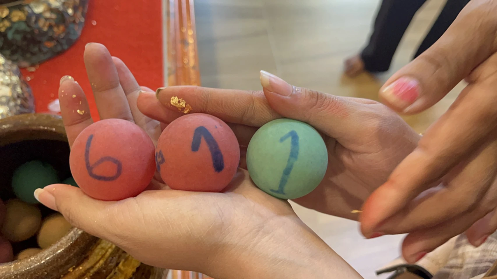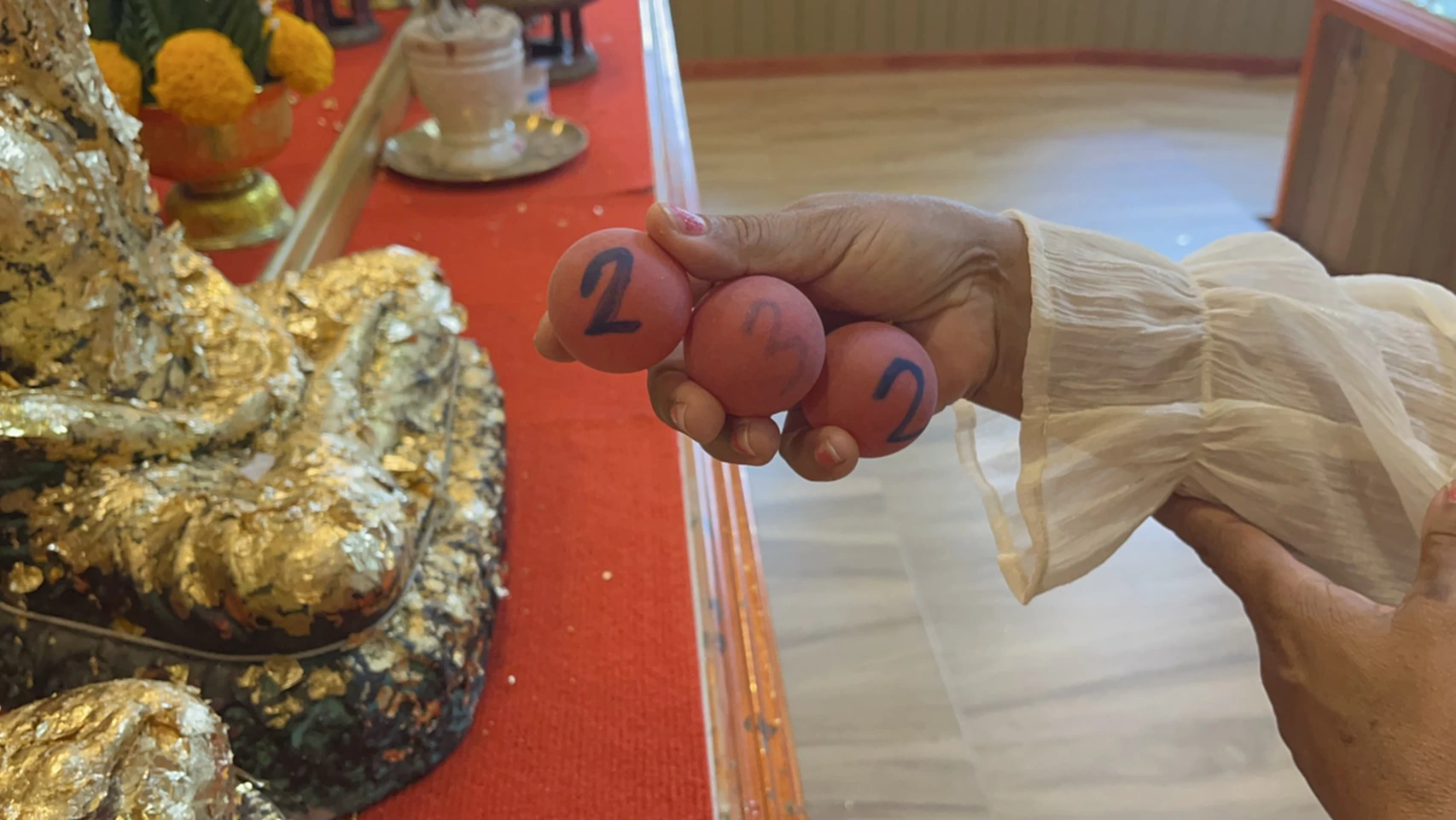 หลังจากเสร็จพิธีแก้บน น.ส.นัทรียาและมารดายังได้ขอโชคลาภ โดยหยิบปิงปองนำโชค ได้เลข 611 และ 232 ซึ่งคอหวยที่อยู่ในพื้นที่ต่างไม่พลาด นำเลขดังกล่าวไปเสี่ยงโชคในงวดวันที่ 16 ต.ค. 2568 ที่จะถึงนี้