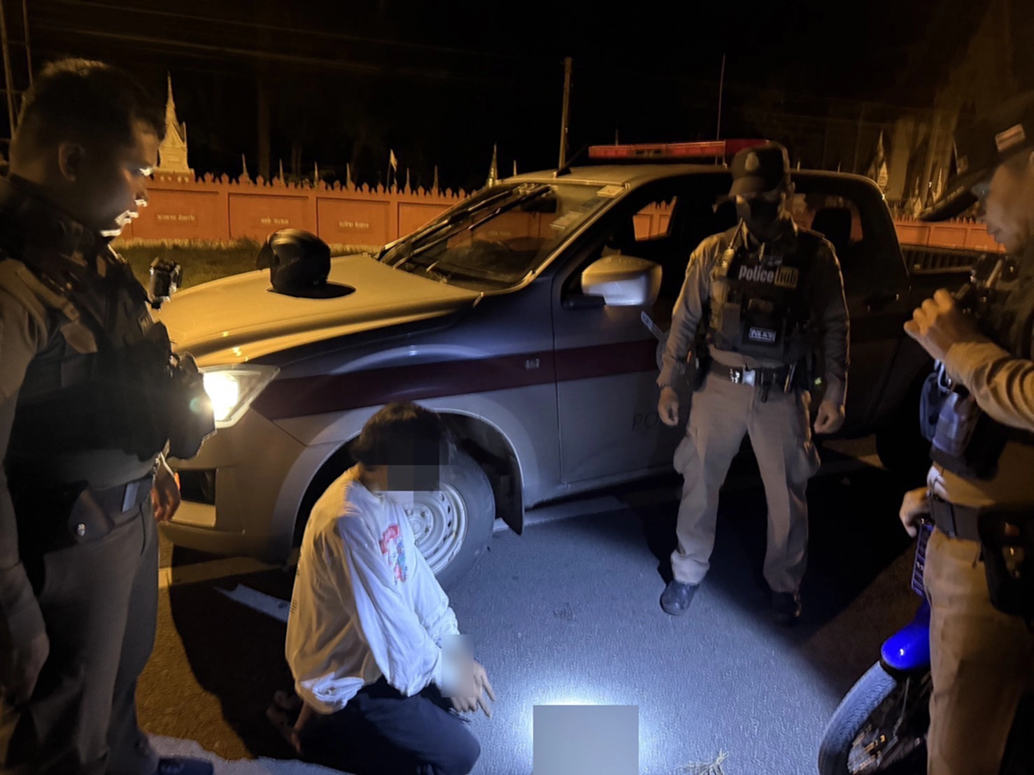 เมื่อคืนวันที่ 2 ตุลาคม 2568 ภายใต้การอำนวยการของ พ.ต.อ.สราวุธ ศรีวิฑูรย์ศักดิ์ ผกก.สภ.บัวเชด ,พ.ต.ท.สุชาติ นาสารีย์ รอง ผกก.สส.สภ.บัวเชด , พ.ต.ท.พงษ์พิทักษ์ ระถาวนิชย์ สว.สส.สภ.บัวเชด นำโดย เจ้าหน้าที่ตำรวจชุดสืบสวน สภ.บัวเชด,สายตรวจรถยนต์ และสายตรวจรถจักรยานยนต์ เวลาประมาณ 23:40 น. เจ้าหน้าที่ตำรวจสายตรวจ สภ.บัวเชด จังหวัดสุรินทร์ ได้ทำการออกตรวจพื้นที่ พบเห็นรถจักยานยนต์ต้องสงสัยบริเวณสี่แยกบ้านจารย์ เพื่อเป็นการป้องปรามการแข่งรถในทางหลวง และรถจักรยานยนต์ที่ดัดแปลงท่อไอเสียส่งเสียงดัง ที่สร้างความรำคาญให้ประชาชนในพื้นที่,รถไม่ติดแผ่นป้ายทะเบียน เจ้าหน้าที่ตำรวจสายตรวจ จึงได้เรียกรถจักยานยนต์คันดังกล่าวให้หยุด เพื่อขอทำการตรวจค้นตามปกติ แต่เจ้าของรถจักยานยนต์คันดังกล่าวพอเห็นตำรวจเรียกให้หยุด จึงได้เร่งเครื่องขับรถจักรยานยนต์หลบหนีไปท่ามกลางความมืดอย่างรวดเร็ว เจ้าหน้าที่ตำรวจจึงได้ออกติดตามและเรียกเจ้าหน้าที่ตำรวจสายตรวจอีกชุด ช่วยตรวจสอบเส้นทางการหลบหนีและช่วยสกัดจับ จากบริเวณถนนบ้านจารย์ ไปทางบ้านตะเปียงคล็อง จนสามารถดักสกัดจับไว้ได้