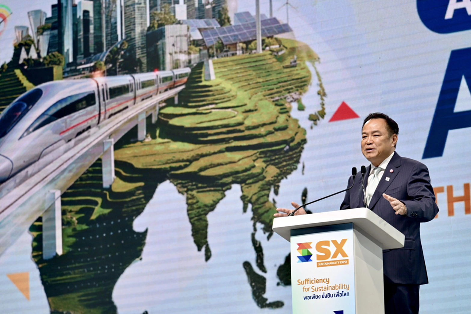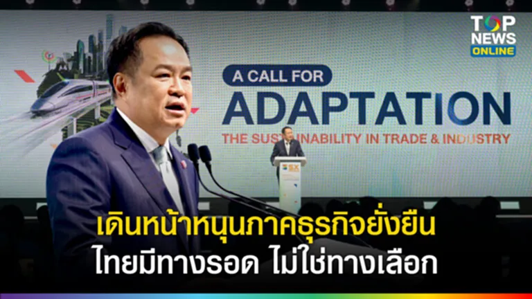 ทั้งนี้งานนี้ทำให้เกิดทำความรู้ความเข้าใจ และความร่วมแรงร่วมใจในการสร้างความเปลี่ยนแปลง โดยเฉพาะเรื่องการค้าและอุตสาหกรรมอย่างเป็นรูปธรรม ประเทศไทยของเรากำลังอยู่ในจุดเปลี่ยนสำคัญ และกำลังเผชิญความไม่แน่นอนทั้งจากภัยสงคราม ภัยการค้า การแข่งขันทางเศรษฐกิจ และภัยจากการเปลี่ยนแปลงของสภาพภูมิอากาศ คำถามคือเราจะพาประเทศไทยไปทางไหน แต่ทั้งนี้คำตอบของตนคือ ต้องพัฒนาประเทศไทยอย่างยั่งยืน และเชื่อว่าการพัฒนาประเทศไทยอย่างยั่งยืนของพวกเรา ไม่ใช่ทางเลือกแต่เป็นทางรอด และสำหรับตนนั้นไม่ใช่แค่ประจำโลกสีเขียว สิ่งแวดล้อมถึงแม้จะมีความสำคัญแต่ก็ยังไม่ครบทุกมิติ ความยั่งยืนคือการทำให้ทั้ง 3 หลักนี้ จะต้องดำเนินไปด้วยกันด้วยความมั่นคง สำหรับประเทศไทย และในทุกประเทศที่จะยึดหลักในการเติบโตอย่างยั่งยืน เศรษฐกิจต้องมั่นคง สังคมต้องมั่นคง และสิ่งแวดล้อมต้องเป็นมิตรและมีความมั่นคง พูดอย่างง่ายๆ คือเราต้องหาโอกาสในการสร้างงาน สร้างรายได้ ให้กับคนไทยมีคุณภาพชีวิตที่ดี อยู่ดีมีสุข มีรายได้มีเงินใช้ มีเงินออม ทำให้ลูกหลานอยู่ได้อย่างมีสุขภาพที่ดีต่อไป และเมื่อเรามีอายุมากขึ้น เราจะได้ไม่ถูกทอดทิ้ง และอยู่ในสภาวะของโลกที่สามารถช่วยตัวเองได้ไม่เป็นภาระของผู้อื่นเช่นกัน ซึ่งเราจะต้องการปรับเปลี่ยน เพื่อให้เราอยู่รอด แต่อยู่รอดด้วยคุณภาพชีวิตที่ดี
