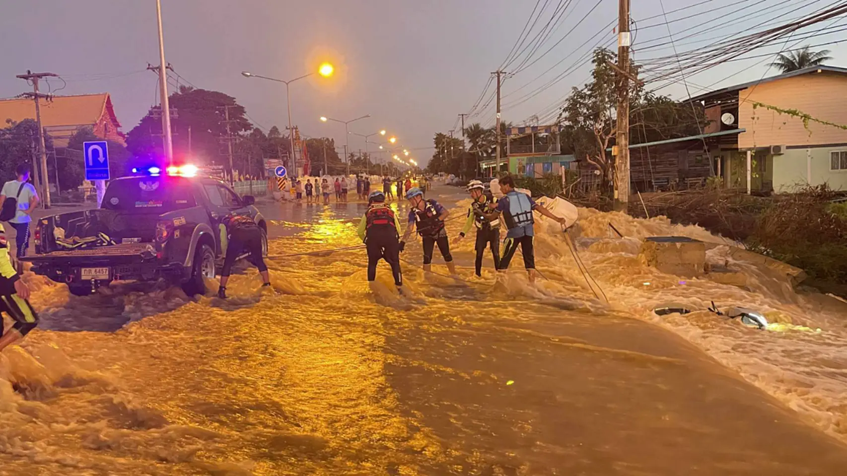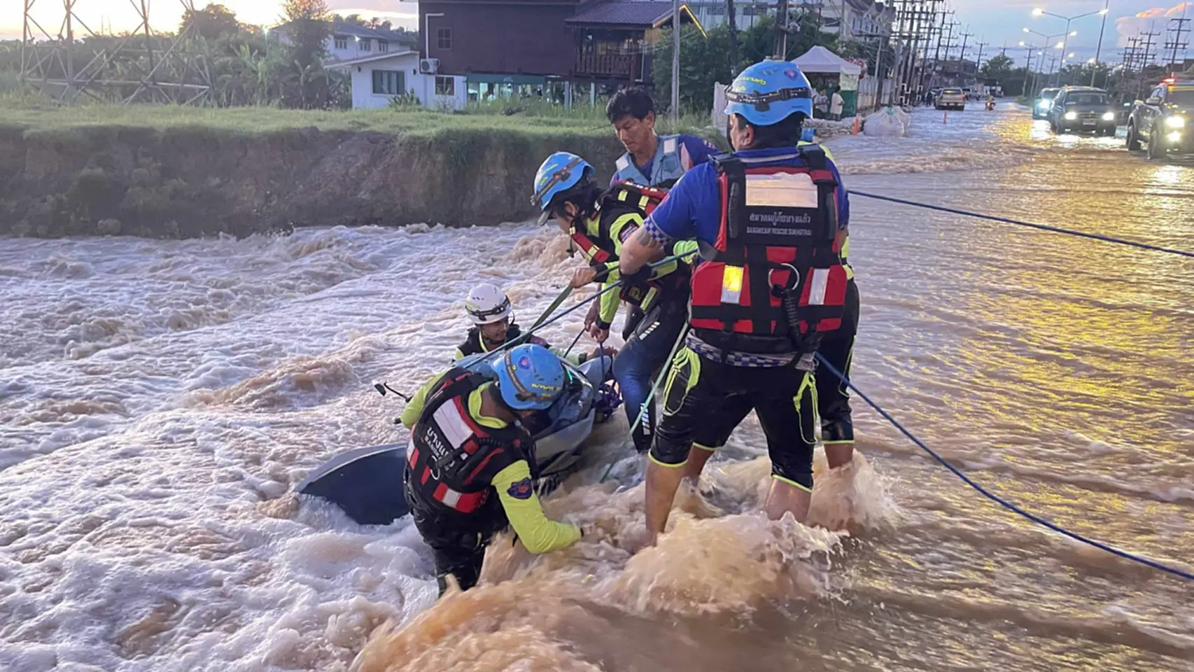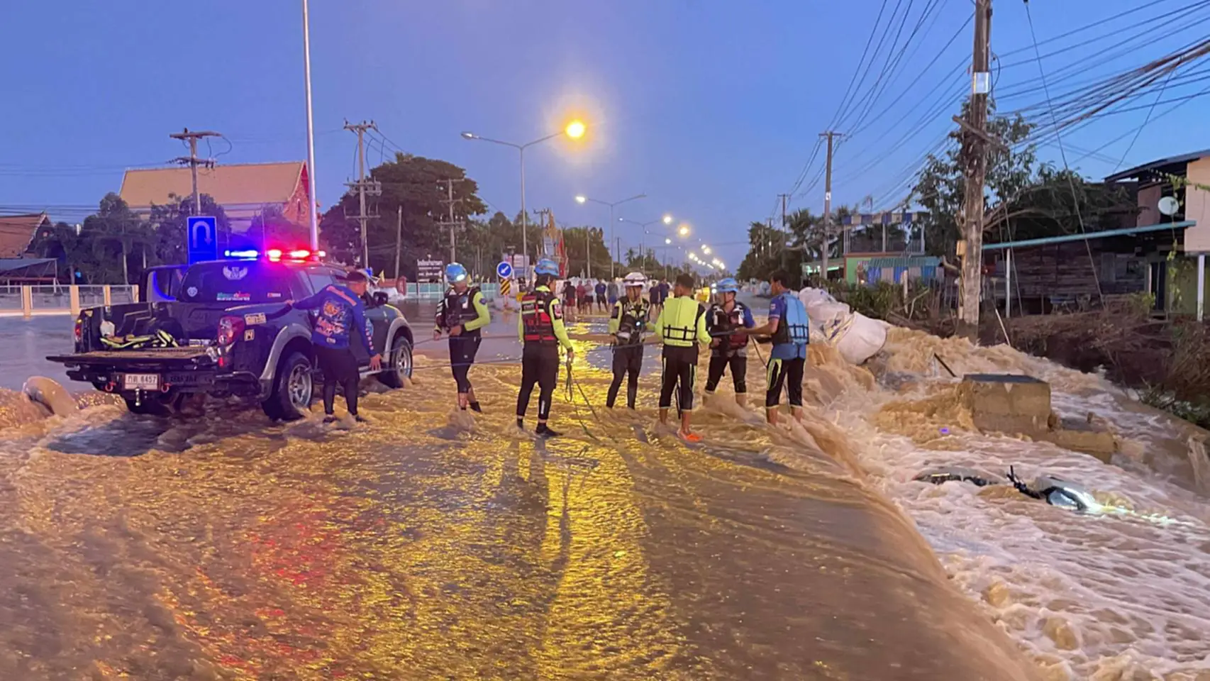 แต่โชคดีไม่มีผู้ได้รับบาดเจ็บทำให้จนท.กู้ภัยบางแก้วสุโขทัย ต้องช่วยกันนำเชือกลงไปมัดจยย.ของชาวบ้านที่ตกลงไปกับสายน้ำขึ้นมาอย่างทุลักทุเล ส่วนที่ริมแม่น้ำยมฝั่งตะวันตกตรงข้ามบริเวณสะพานโตโยต้า ม.1 ต.ปากแคว น้ำในแม่น้ำยมได้ดันกระสอบทรายที่จนท.ตั้งทำเป็นแนวกันน้ำล้มทำให้น้ำไหลบ่าล้นผนัง