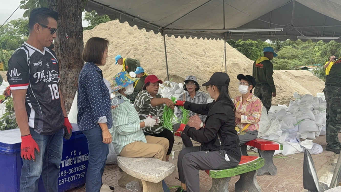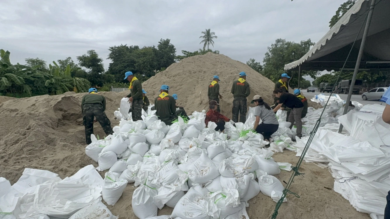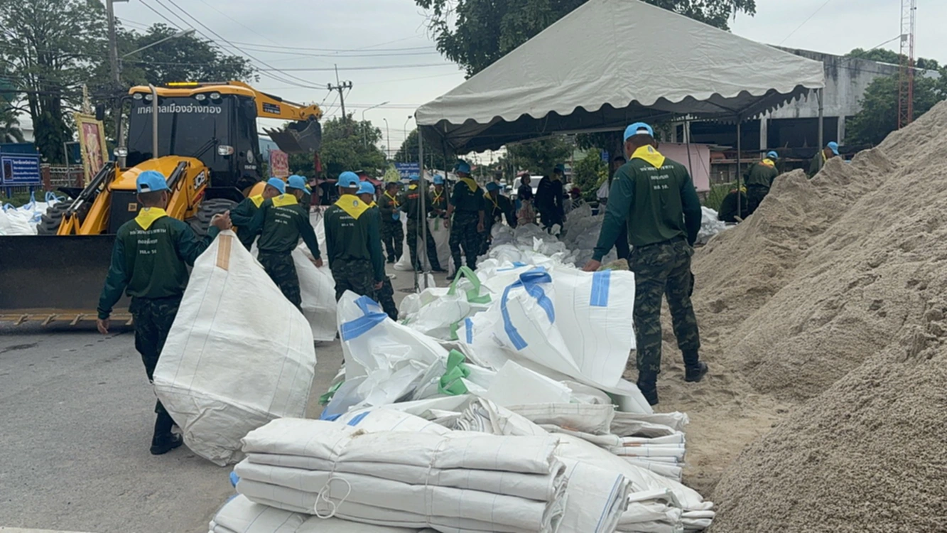 วันที่ 3 ต.ค. 68 สถานน้ำเจ้าพระยาไหลผ่านจังหวัดอ่างทอง มีปริมาณเพิ่มขึ้นอย่างต่อเนื่อง ล่าสุดเขื่อนเจ้าพระยา จังหวัดชัยนาท เพิ่มการระบายน้ำในอัตรา 2,500 ลบ.ม./วินาที ส่งผลให้แม่น้ำเจ้าพระยาที่บริเวณหน้าศาลากลาง จังหวัดอ่างทอง ระดับน้ำสูง 8.89 เมตร จากจุดวิกฤตอยู่ที่ 8 เมตร จากระดับตลิ่งที่มีเขื่อนกั้นน้ำ 10 เมตร มีปริมาณน้ำไหลผ่าน 2,479 ลบ.ม./วินาที ทำให้มีน้ำไหลซึมบริเวณเขื่อนริมแม่น้ำเจ้าพระยาหลายจุด ตลอดแนวริมเขื่อนแม่น้ำเจ้าพระยาทั้ง 2 ฝั่ง เทศบาลเมืองอ่างทอง เร่งวางกระสอบทรายตามจุดเสี่ยง เพื่อป้องกันเขตเศรษฐกิจการค้า ศูนย์ราชการอย่างเร่งด่วน ล่าสุดพบว่าประตูระบายน้ำริมเขื่อนวัดสนามชัย มีรอยรั่วน้ำลอดใต้เขื่อนเข้าด้านใน